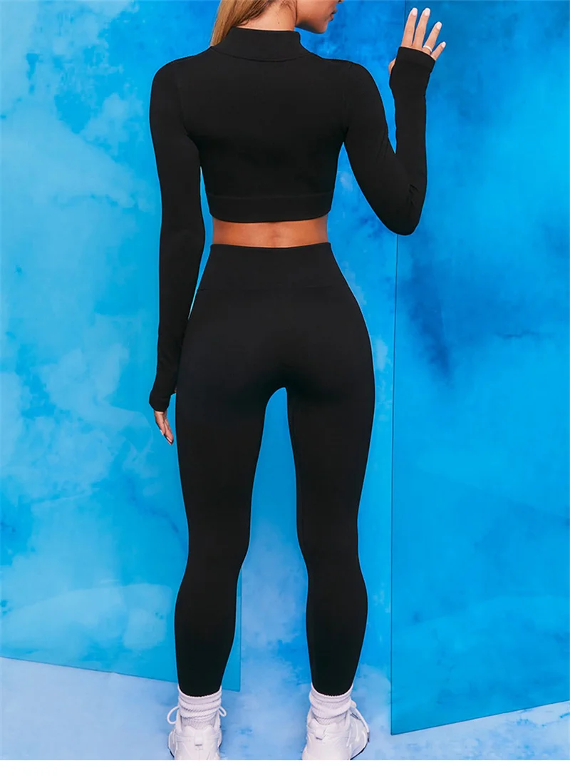 Женская спортивная одежда, комплект для йоги, бесшовные леггинсы, короткий топ на молнии с длинным рукавом, спортивная короткая одежда для тренажерного зала, костюм для фитнеса и бега O101940