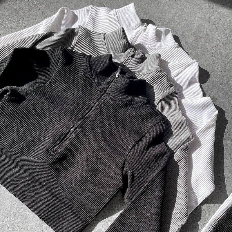 Бесшовные спортивные рубашки, женские свитшоты на молнии из 2 предм...