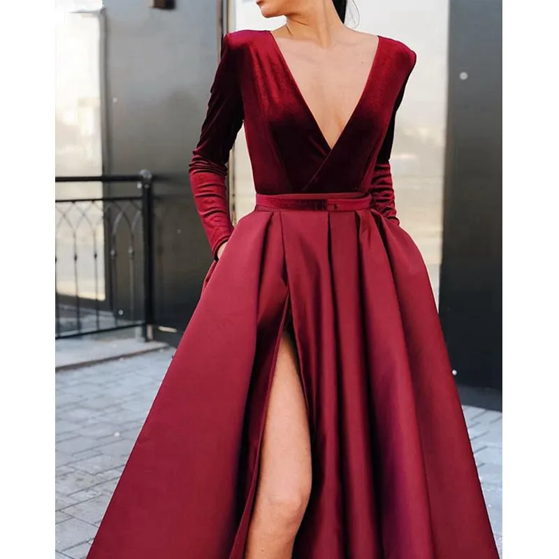 Женское платье-Русалка с разрезом сбоку, длинное вечернее платье с длинными рукавами-фонариками, на пуговицах, платье для выпускного вечера
