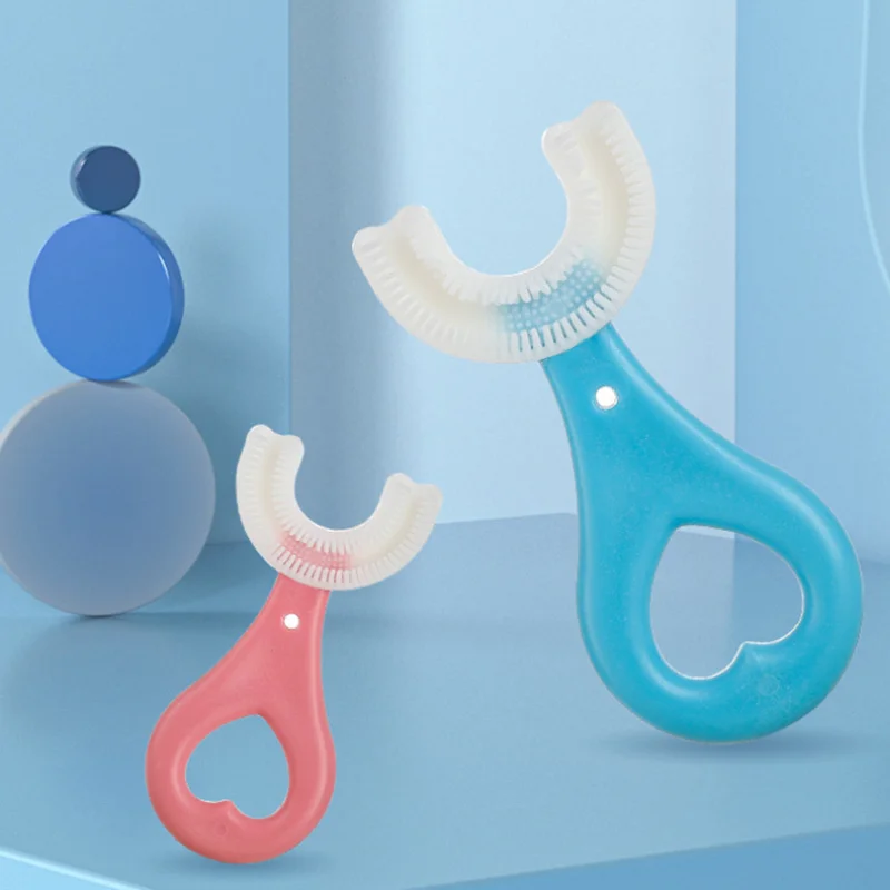Детская зубная щетка U-образной формы, зубная щетка с ручкой, Силиконовая зубная щетка для ухода за полостью рта для малышей от 2 до 12 лет