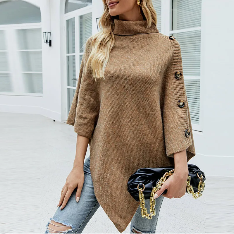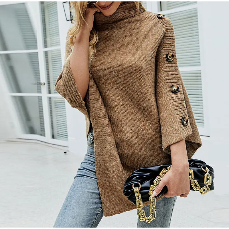 2022 осенне-зимнее пончо на пуговицах, Женский Свитер оверсайз, вод...