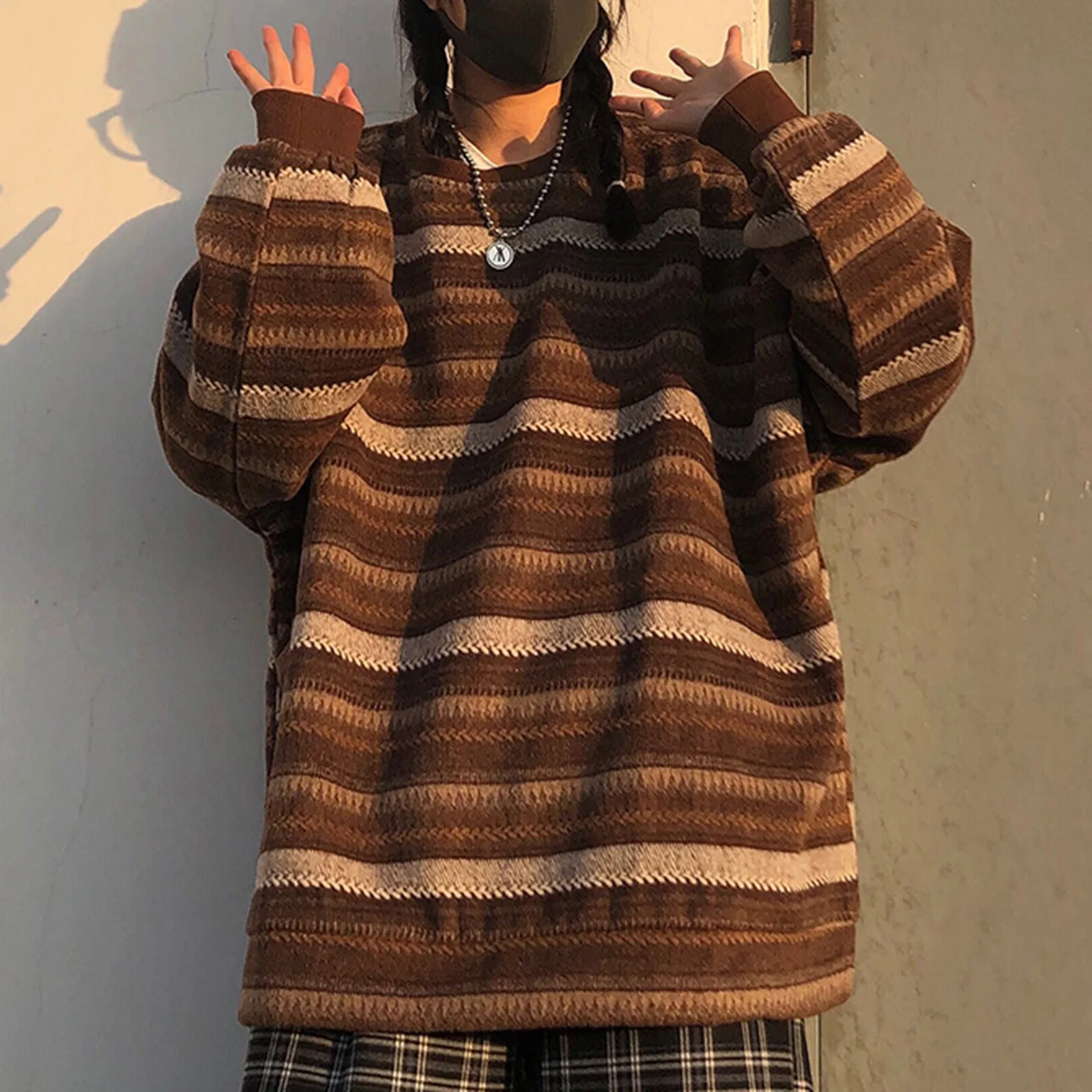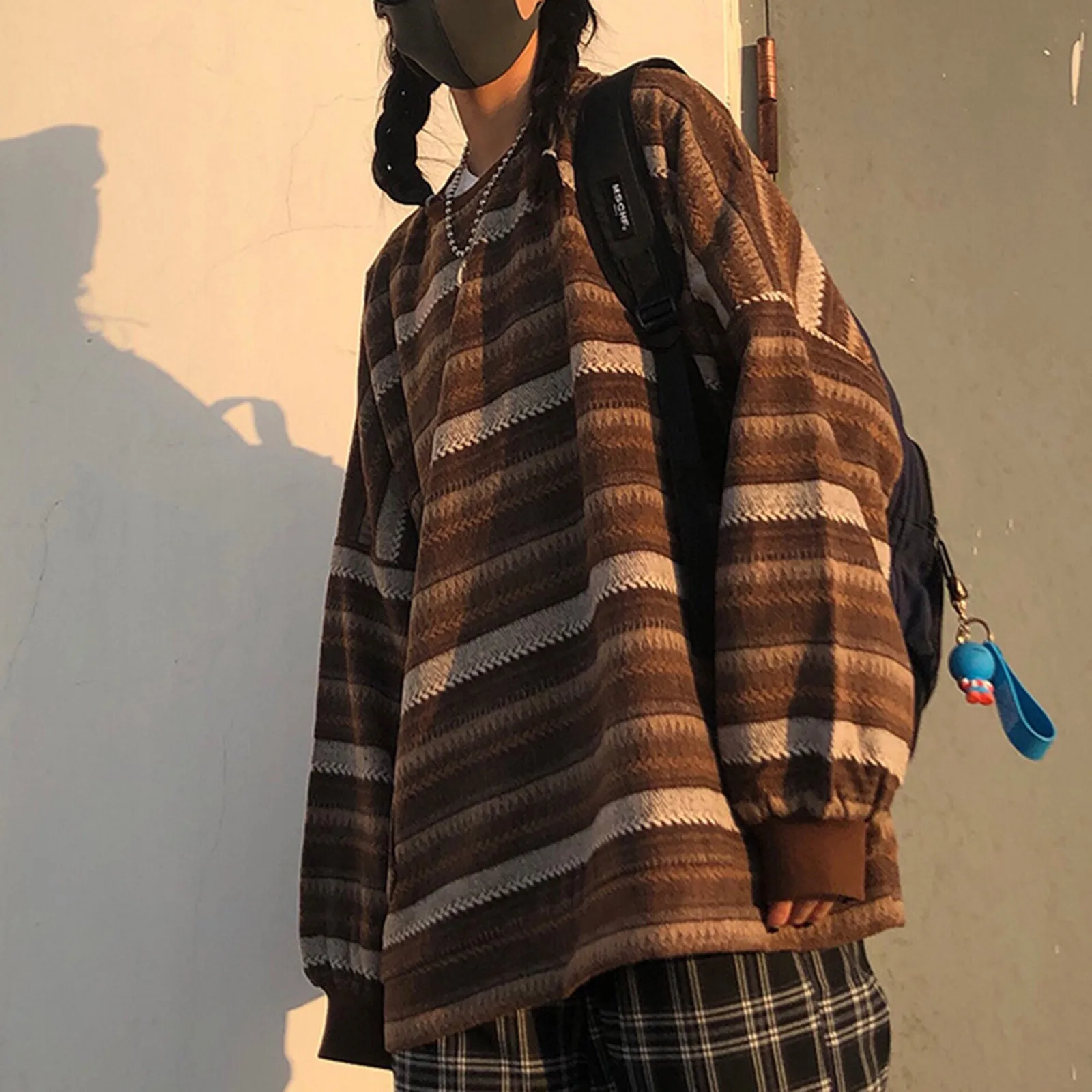 Особенности: повседневный, свободный, в полоску, нейтральный стиль, японский стиль, увеличенный дизайн, теплый и подходит для осени и зимы