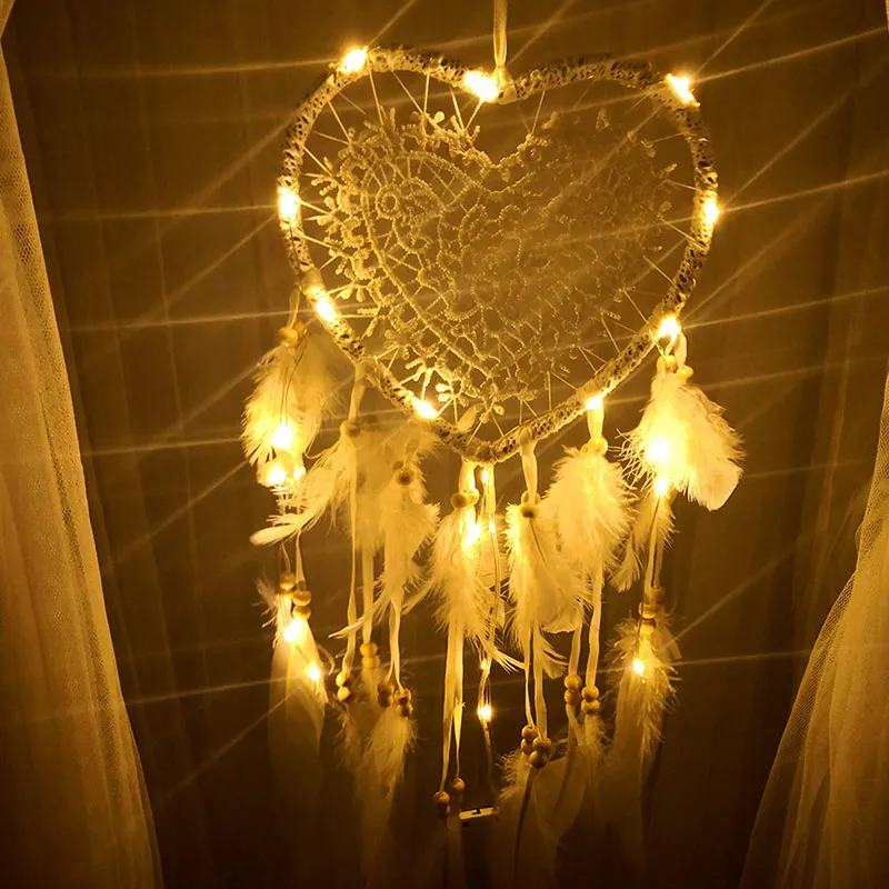 Светодиодная гирлянда Ловец снов в форме сердца, подвесное светильн...