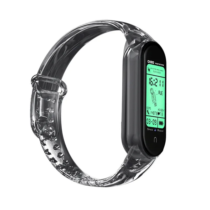 Характеристика:1. Прозрачный силиконовый ремешок Смарт-часы браслет меняет цвет при воздействии на светильник, принося новую волну опыта.2. Мягкий силиконовый материал гарантирует высокое качество.3. Полное покрытие для защиты поверхности от ежедневных повреждений.4. Водонепроницаемый, не теряющийся, приятный для кожи дизайн, материал не наносит вреда коже человека, защищает окружающую среду, безопасность и не вызывает аллергии.5. Различные цвета на выбор и сменные спортивные браслеты.6. Материал изделия: силикон7. Применимые модели: для Mi Band 6/ 5 /4/ 3Посылка включает:1 ремешок для часов (часы не входят в комплект)