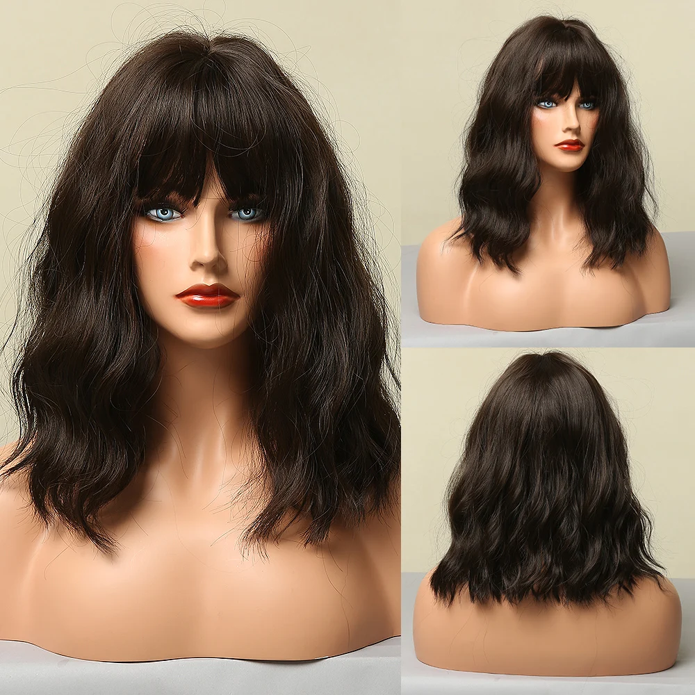 Волосы синтетические короткие волнистые с челкой для чернокожих женщин