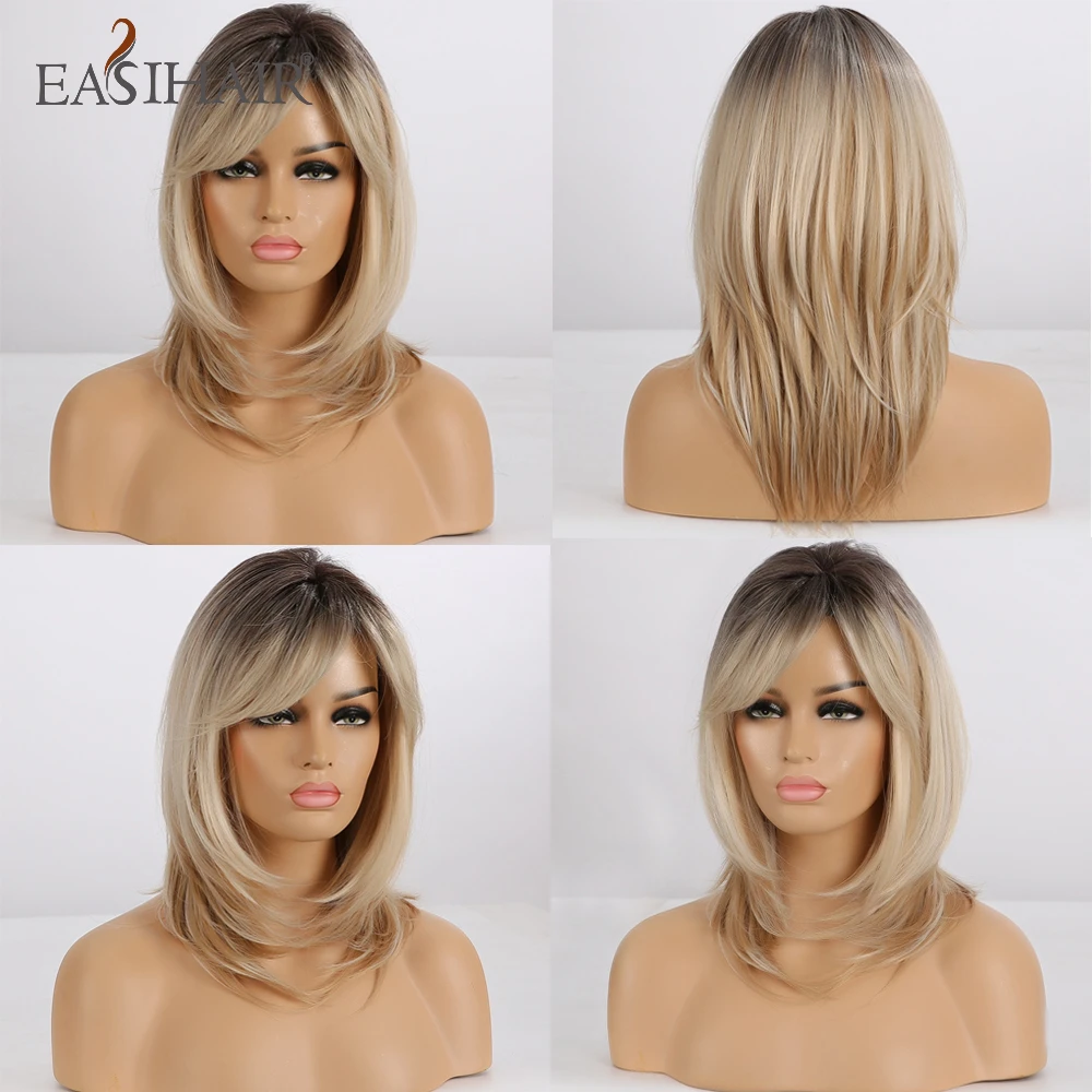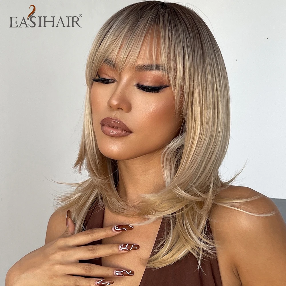 EASIHAIR длинные прямые светлые синтетические парики с челкой, многослойные, длина плеча, женские парики, натуральный вид, Термостойкое волокно
