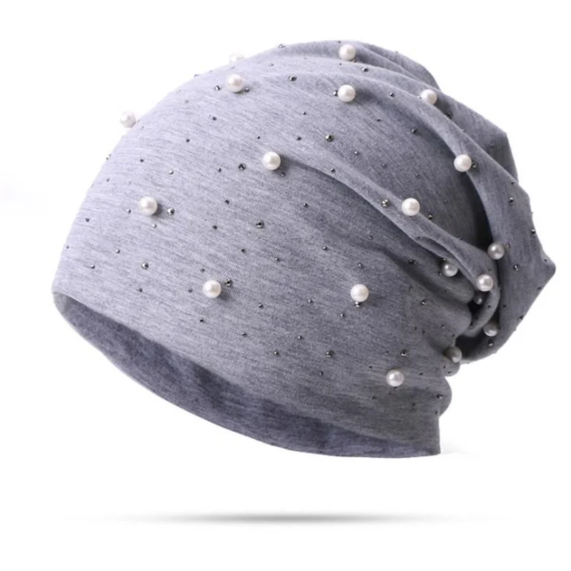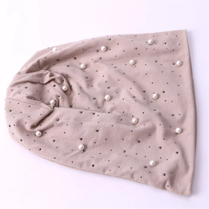 Женская Шапка-бини с жемчугом, головной убор, однотонная шапка с жемчугом, осенне-зимние шапки для женщин, модная женская шапка