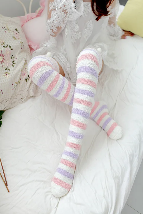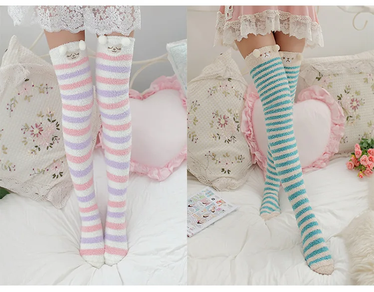 Японские моделирующие гольфы в стиле девушки Мори, полосатые милые компрессионные теплые носки на осень и зиму, милые уютные длинные носки до бедра