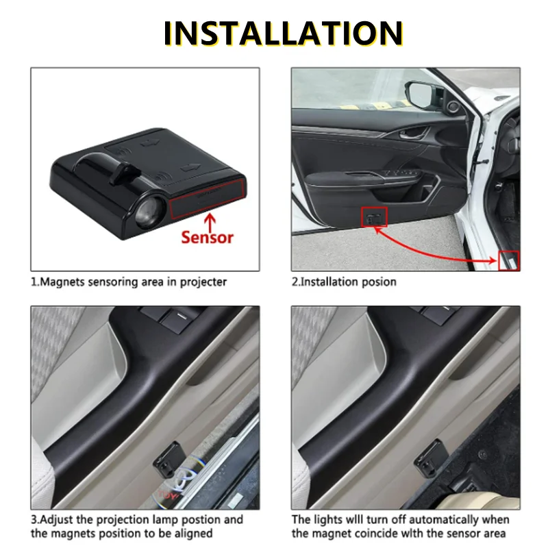 Введение установки:1: сначала лампа будет отрегулирована в положение лампы, а затем протестировать магнит, и лампа может автоматически переключаться на лампу.2: Будем рады видеть на двери прикрепленные огни, поставить магниты на порог, и это закрывает дверь, установленную в автомобиле.3: Добро пожаловать с отделением магнита, автоматически Откройте лампу.4: Добро пожаловать на светильник по некоторым предложениям, чтобы избежать старта.