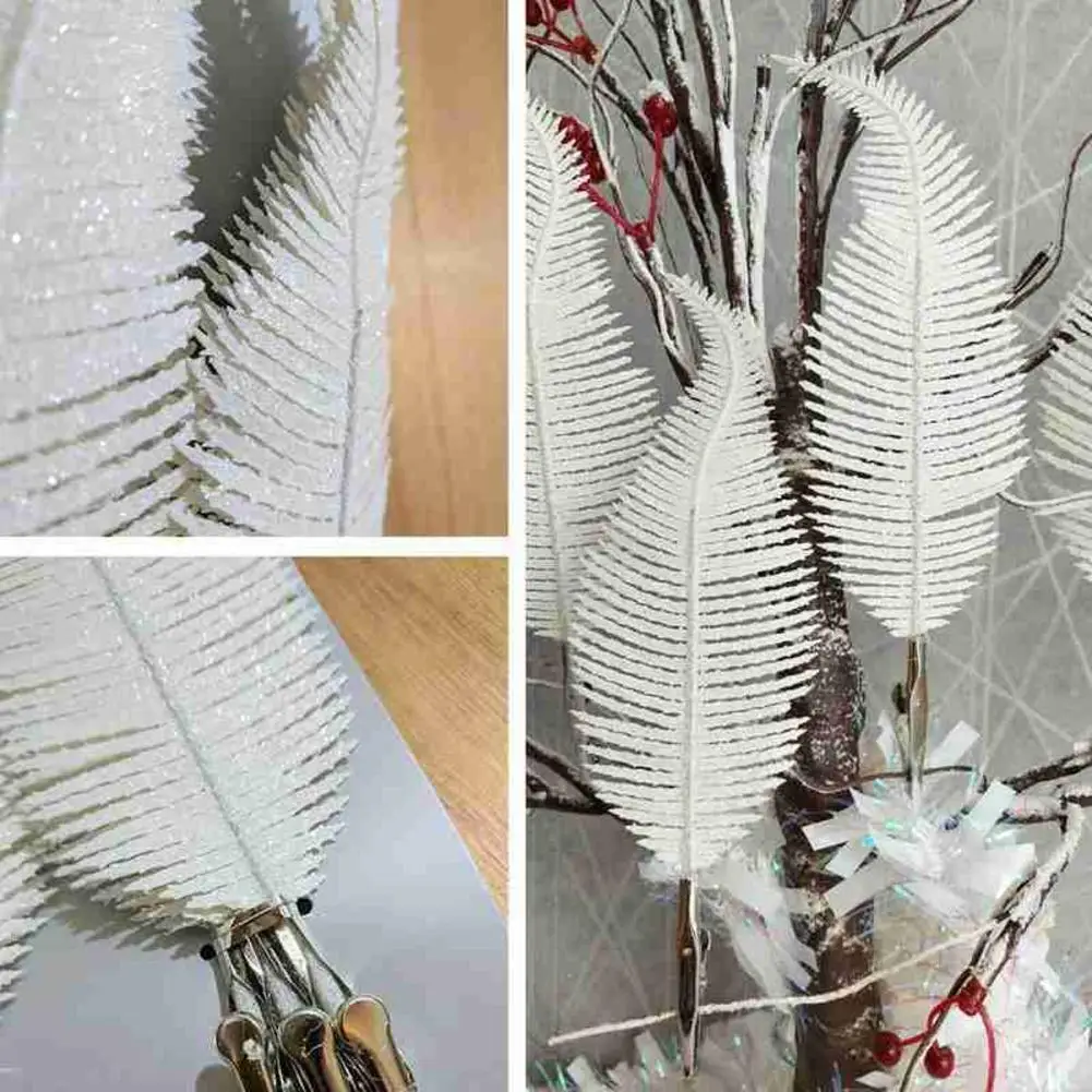 Подвеска в виде рождественской елки с золотым и серебряным порошком, белые украшения, перо с блестками G3E3