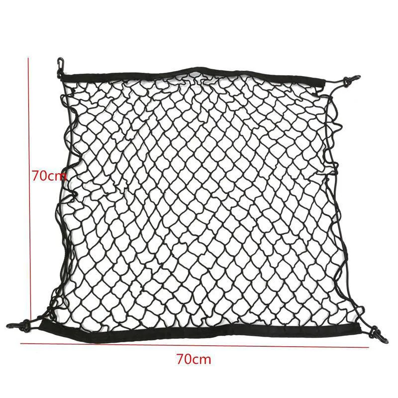 100% новый и высокое качествоИзготовлен из нейлонового материала, высокая износостойкостьСильная Растяжка и гибкая масштабируемостьС 4 пластиковыми крючками, легко и удобно устанавливать и использоватьПредметы для хранения, предотвращают повреждение предметов и сохраняют ваш автомобиль аккуратным и чистымПожалуйста, проверьте форму вашей автомобильной лодки и убедитесь в пригодности перед покупкойМатериал: нейлон + пластикЦвет: черныйРазмер: 70x70 смПосылка:1 x грузовая эластичная сетка с 4 крючкамиИдеально подходит для хранения заднего груза в автомобилях и внедорожникахПеред покупкой проверьте 4 петли в багажнике!(У вашего багажника должно быть 4 петли)Пожалуйста, проверьте это перед покупкой!