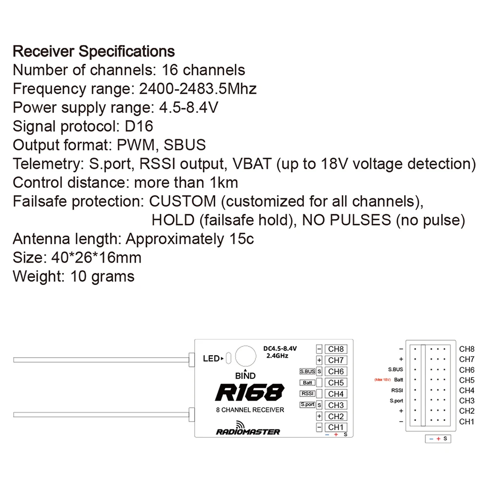 RadioMaster R81 R84 R86 R86C R88 R161 R168 2,4 ГГц по 1 км SBUS нано-приемник спутникового приемника FrSky D8 TX16S Поддержка возврата RSSI для дрона с дистанционным управлением