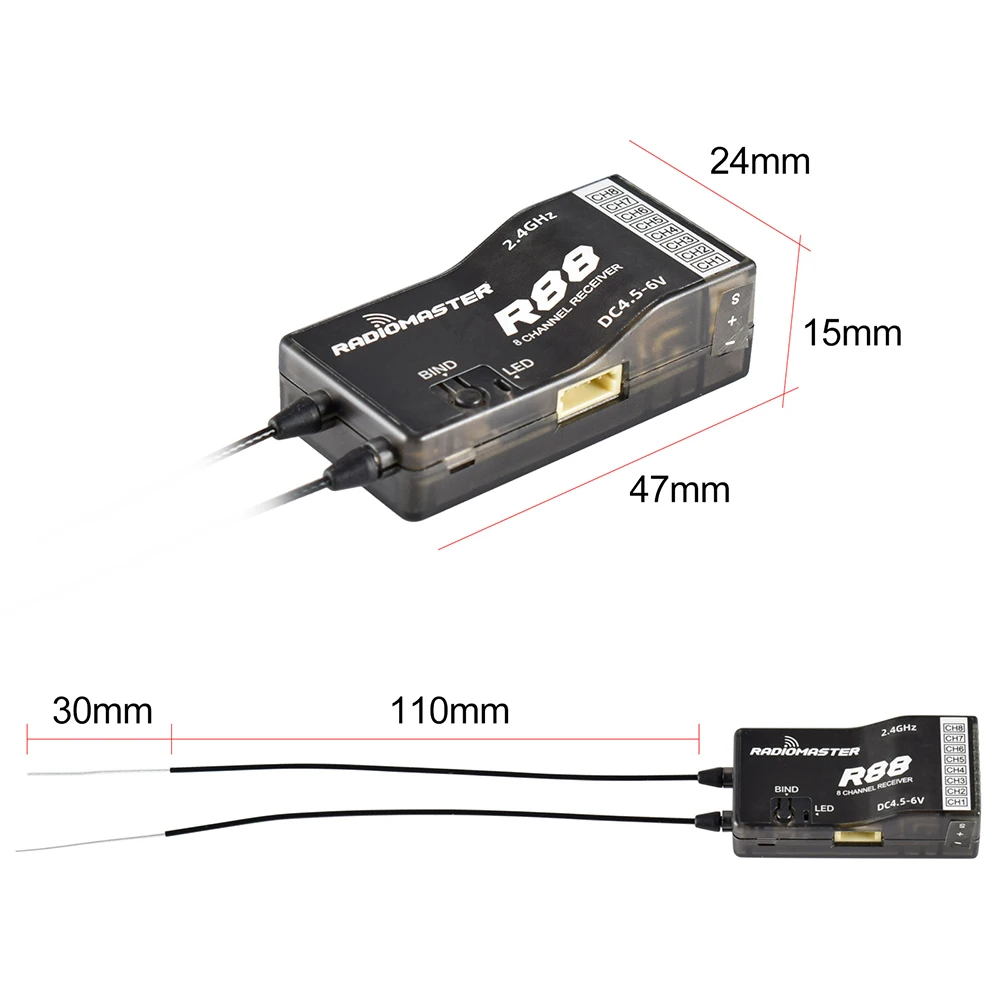 2,4 ГГц по 1 км SBUS нано-приемник спутникового приемника FrSky D8 TX16S передатчик, 2400-2483,5 МГц диапазон частот, Поддержка возврата RSSI для дрона с дистанционным управлением.Характеристики:Название бренда: RadioMasterНазвание товара: нано-приемникМодель: R81 R84 R86 R86C R88 R161 R168 опционально