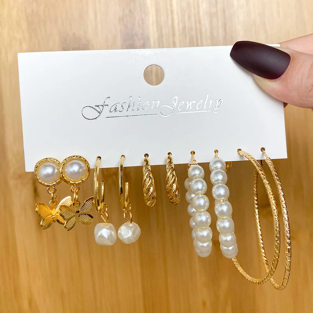 KISS WIFE Модные золотые геометрические квадратные круглые серьги-кольца с жемчугом, набор для женщин, акриловые серьги-кольца с бабочкой из смолы, ювелирные изделия
