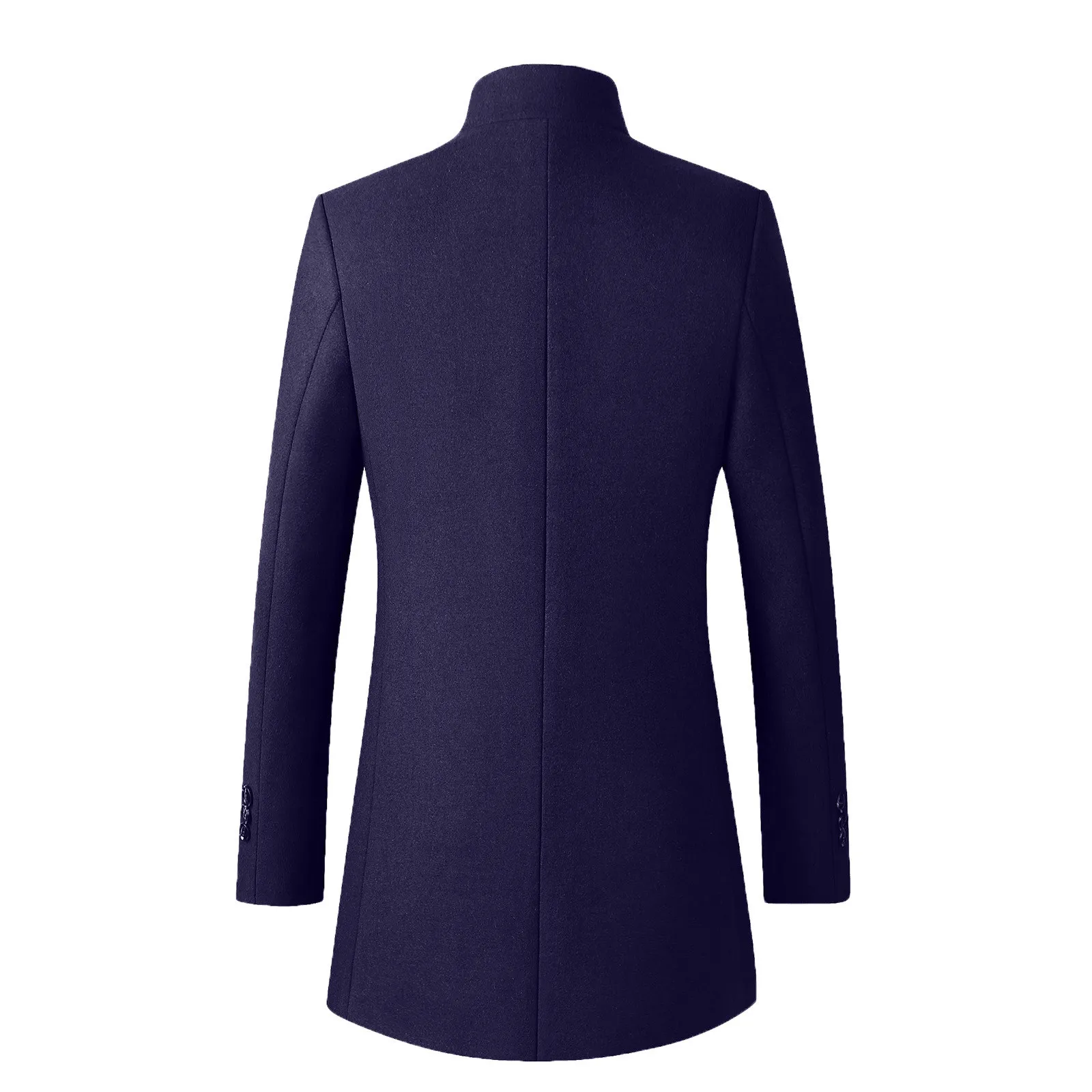 Мужские Осенне-зимние однотонные тренчи с длинными рукавами и воротником-стойкой