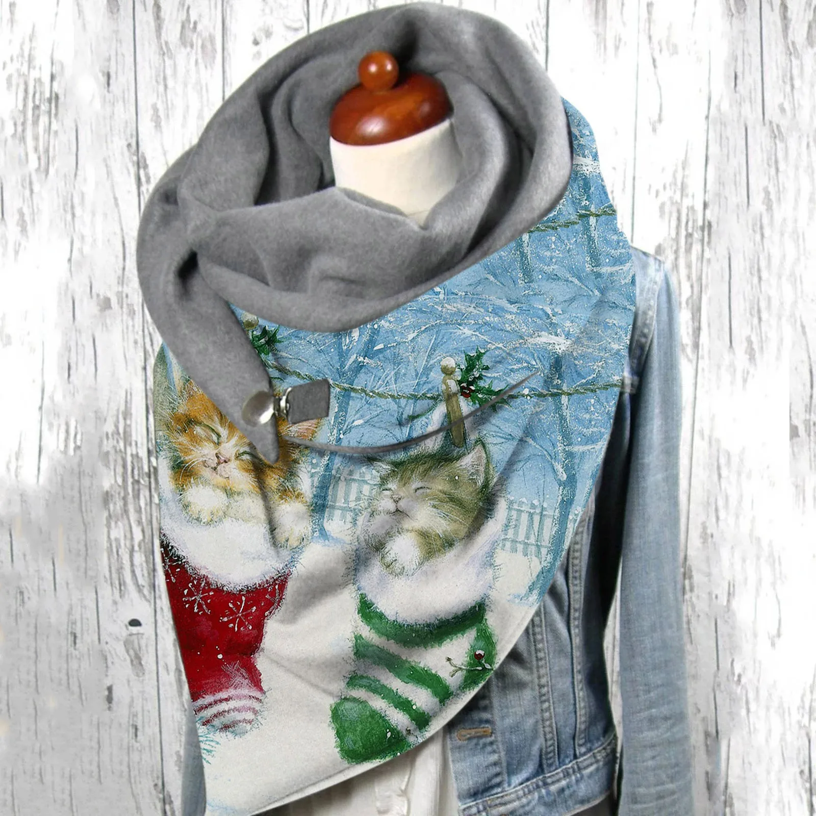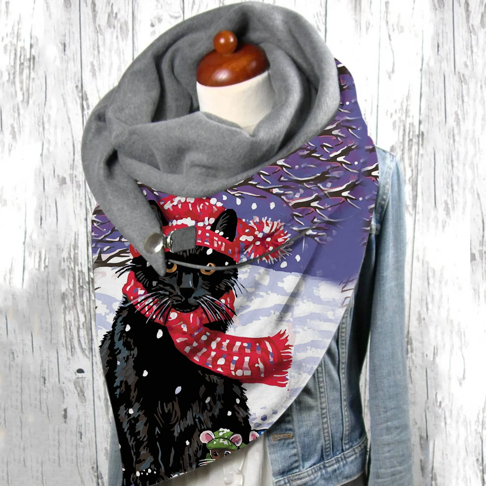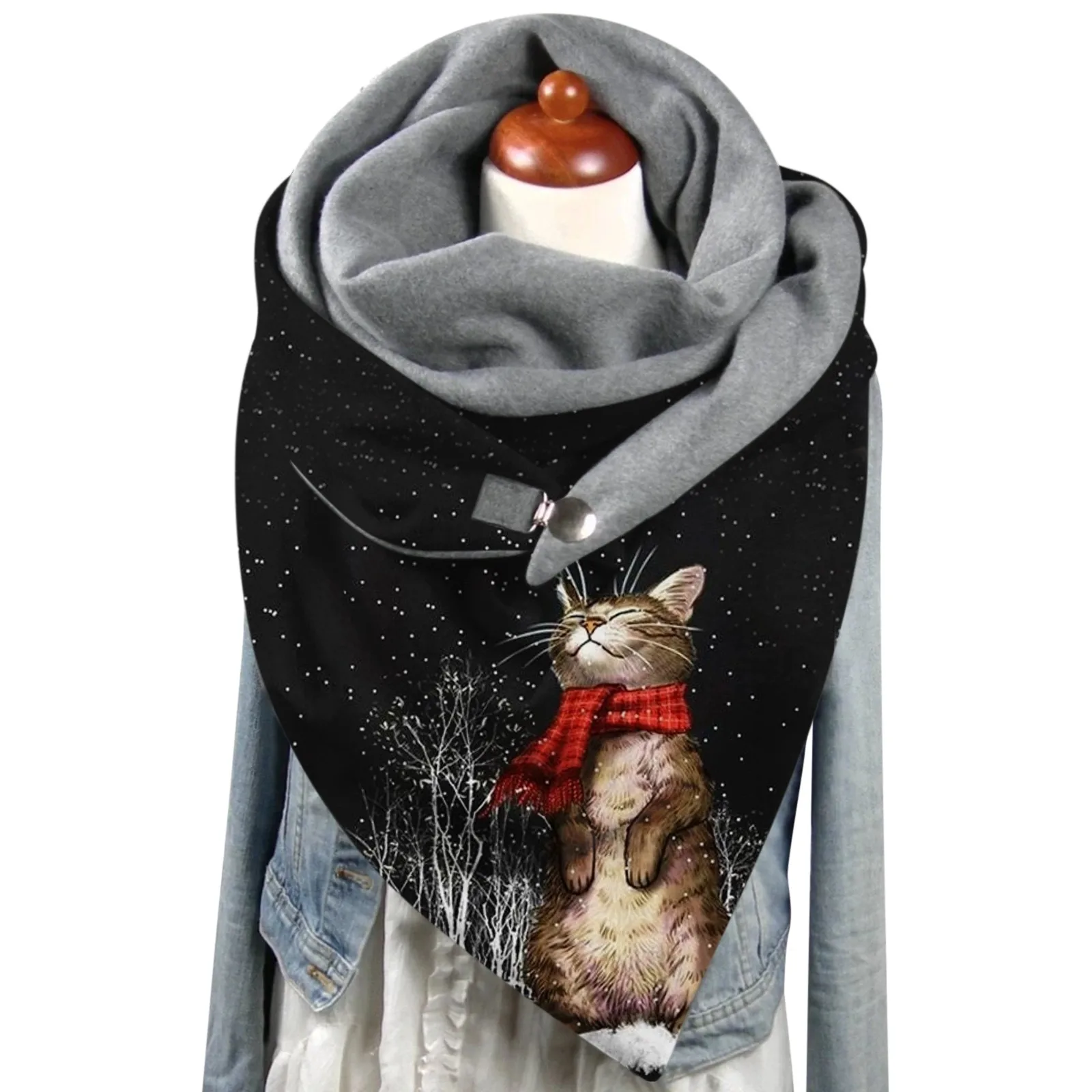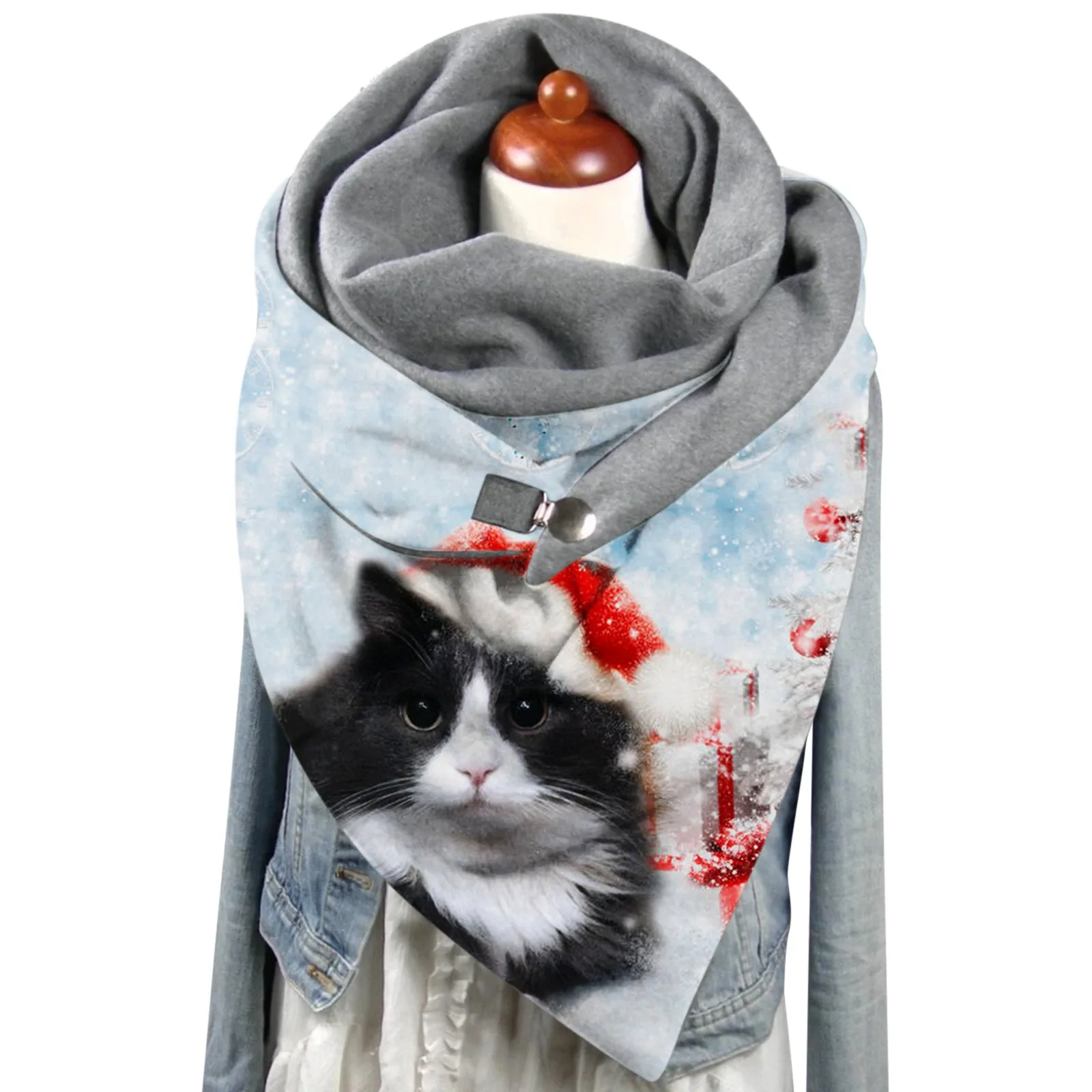 Шарфы с принтом кошки, шарф с двухслойной пряжкой, зимние кашемировые женские теплые мягкие удобные шарфы, шали, модная женская бандана