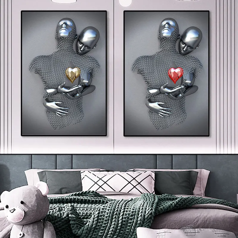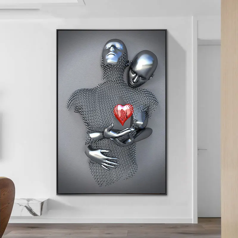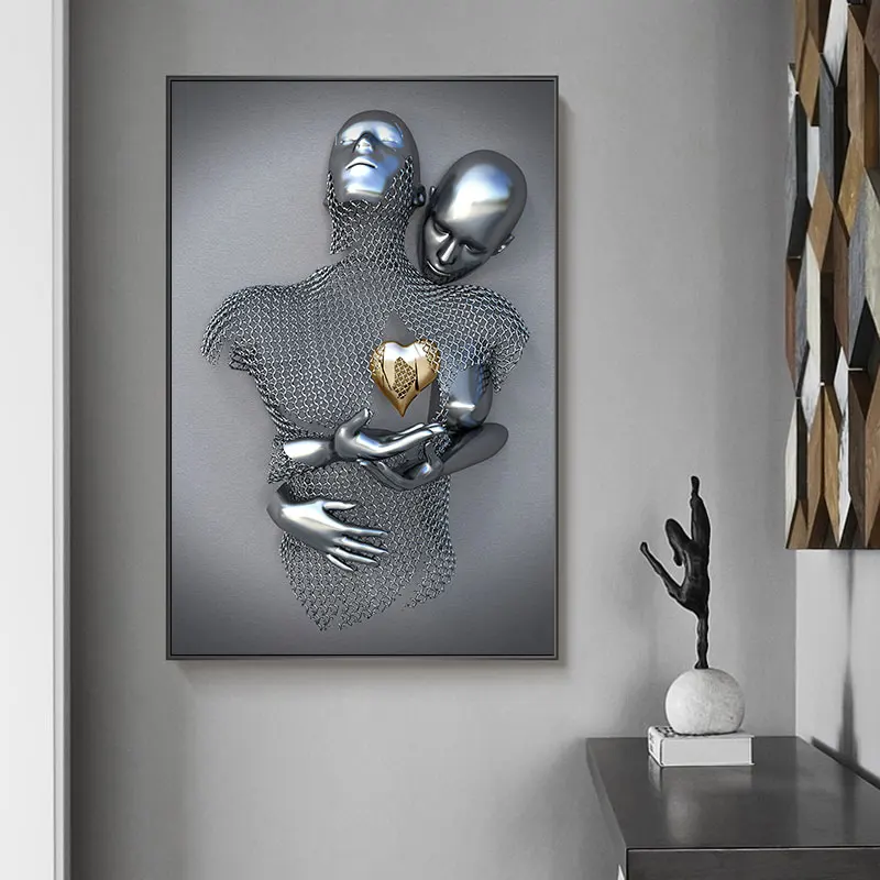 Абстрактная Металлическая Статуя пары, Картина на холсте, романтиче...