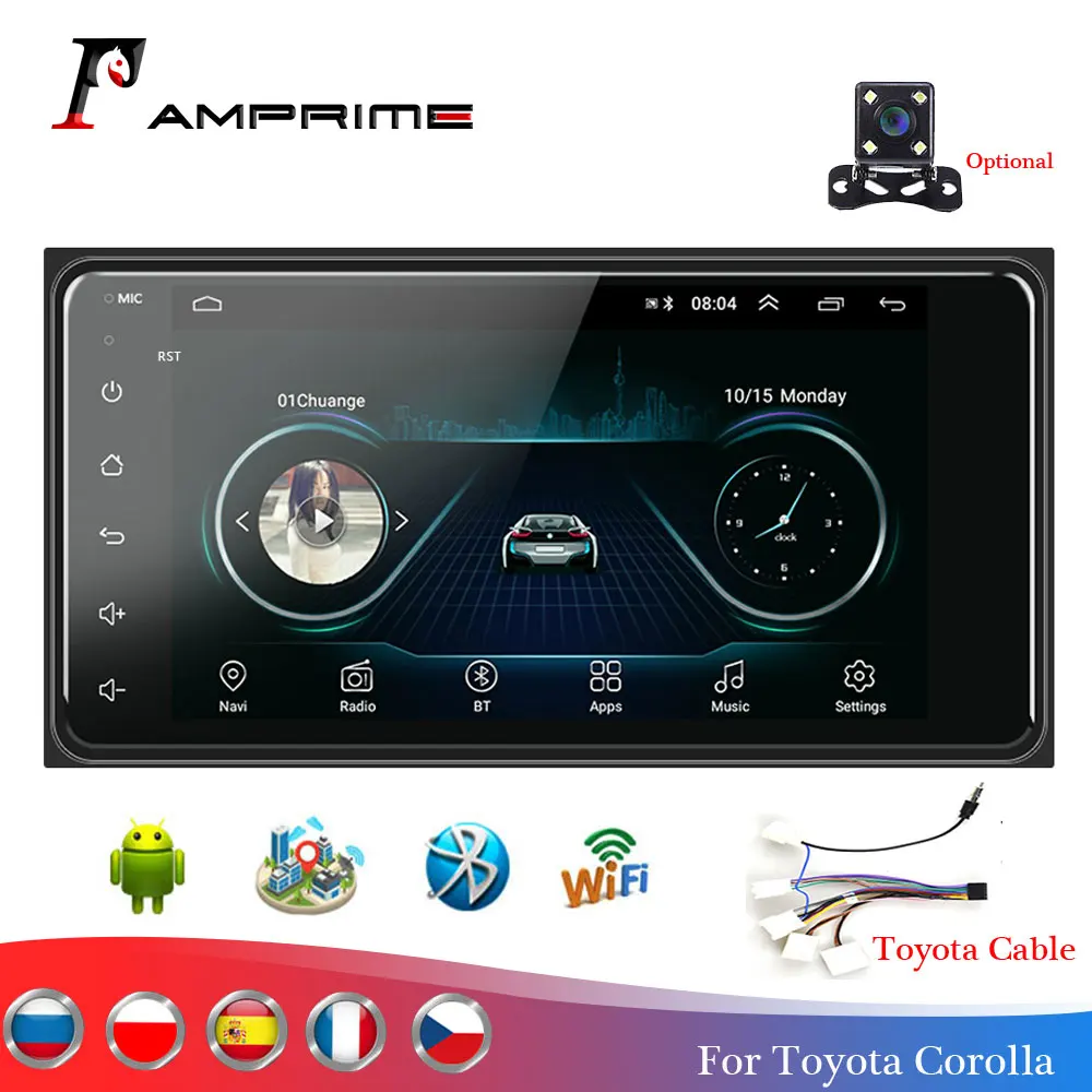 AMPrime 2 Din автомобильный стерео радио 7 "Android автомобильный Мультиплеер GPS Wifi Авторадио Bluetooth для Toyota Corolla камера заднего вида