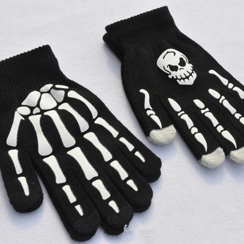 Светящиеся перчатки для Хэллоуина, зимние теплые Нескользящие ужасные перчатки для рук, черепа, гримаса, варежки, теплые перчатки унисекс