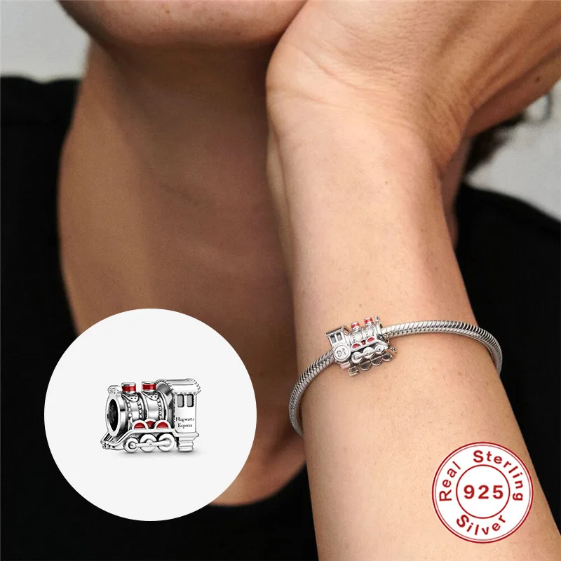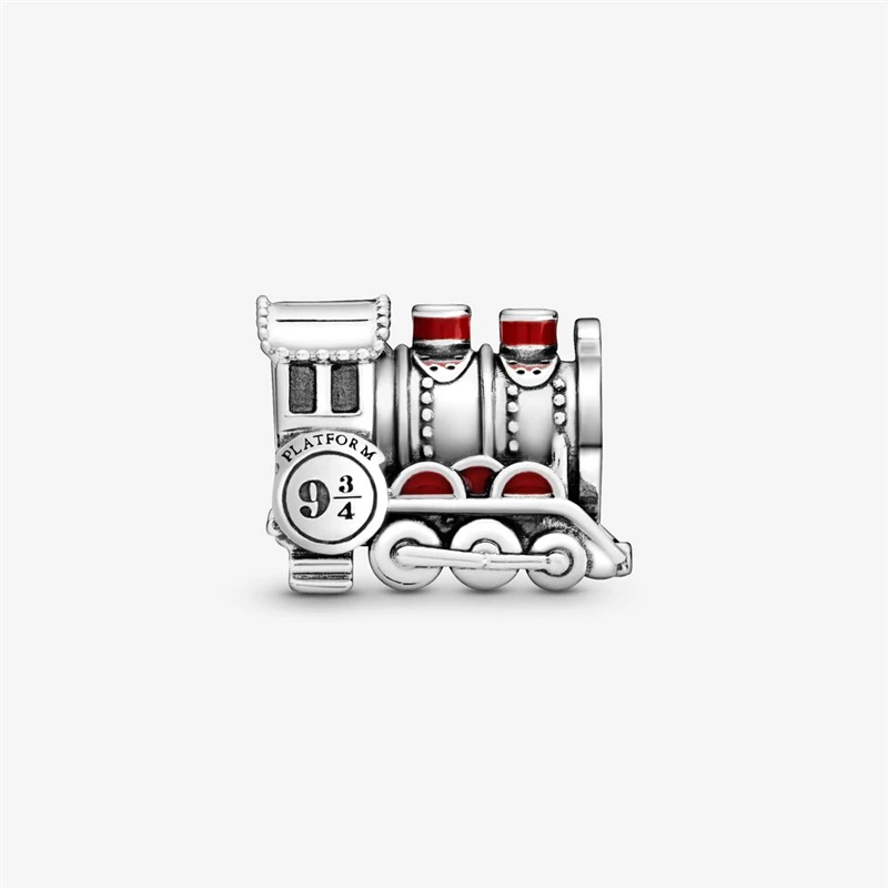 Подходят посеребренные браслеты из бисера для женщин серебряный цвет Рождество Мороженое камера поезд розовое эмалированное сердце чемодан Шарм бусы