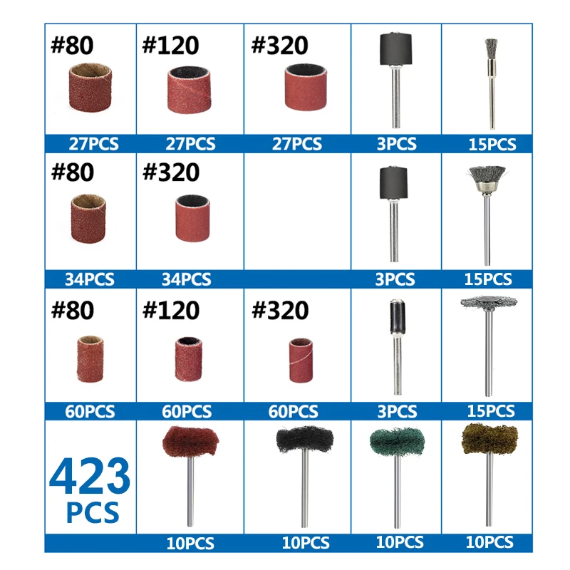 Набор Полировальных Абразивных инструментов, 423 шт., аксессуары дл...