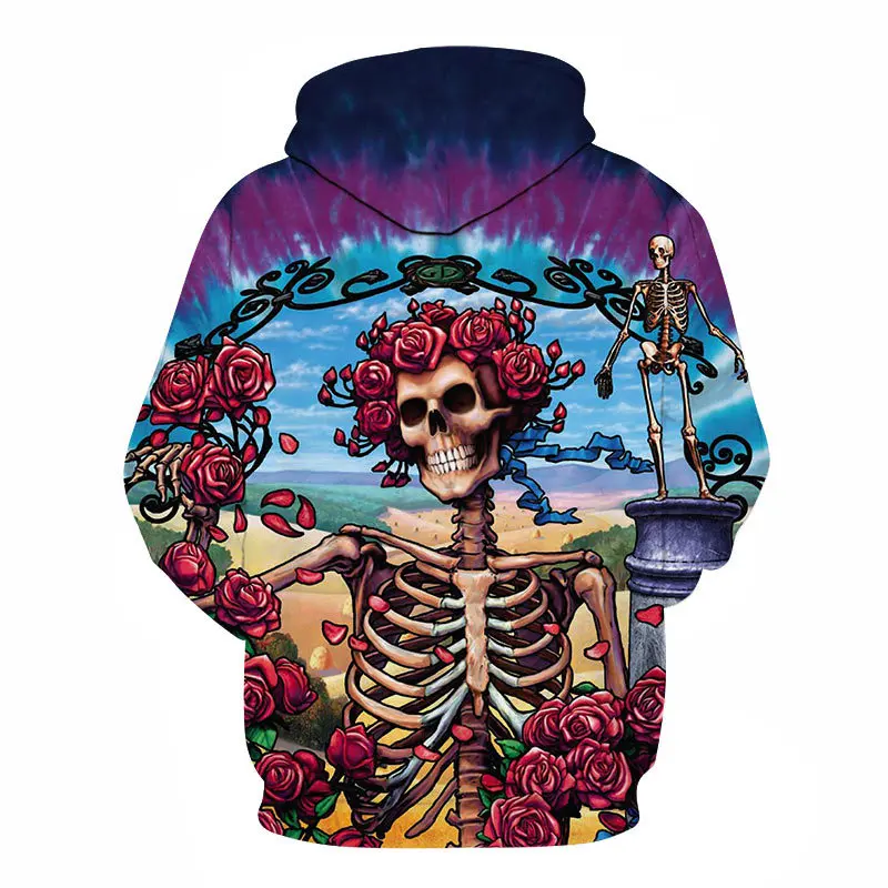 3d Толстовка с черепом мужские худи с розой, ярких цветов, с рисунк...