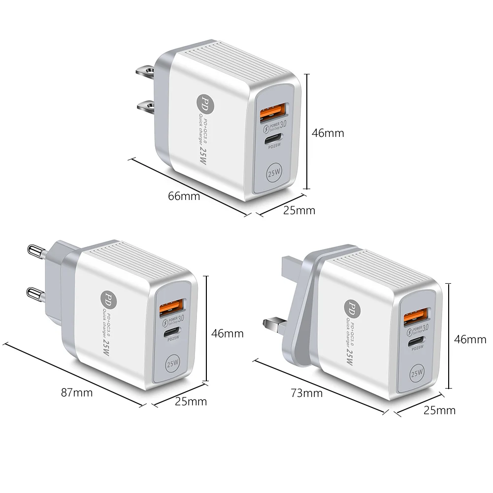 Универсальное зарядное устройство PD 25W + QC3.0 для мобильных телефонов, зарядное устройство для путешествий, офиса, дома, портативное зарядное устройство 5А USB Type C для планшетов, быстрое зарядное устройство, адаптер для iPhone 13