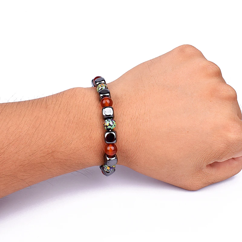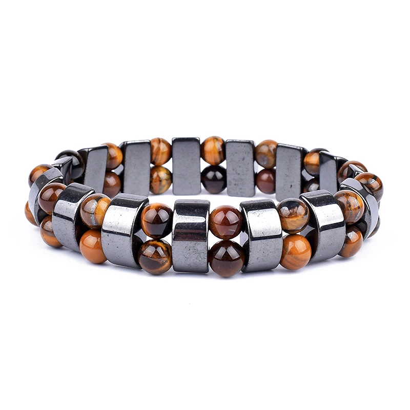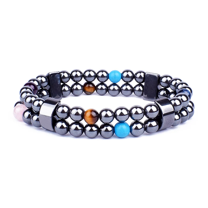 Магнитные Двойные Браслеты из гематита для мужчин и женщин, браслеты из натурального камня гематита, забота о здоровье, ювелирные изделия