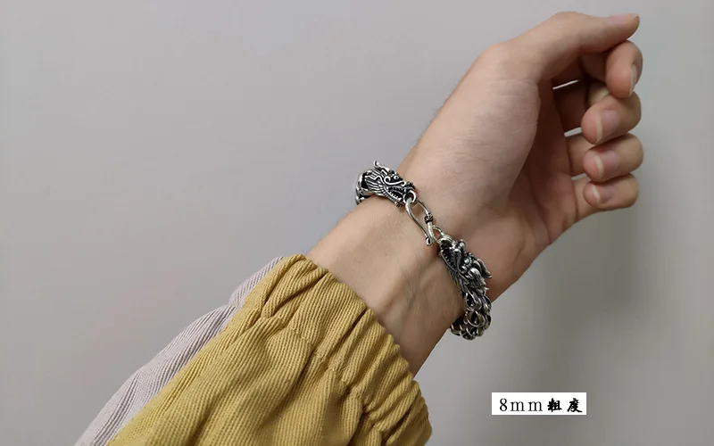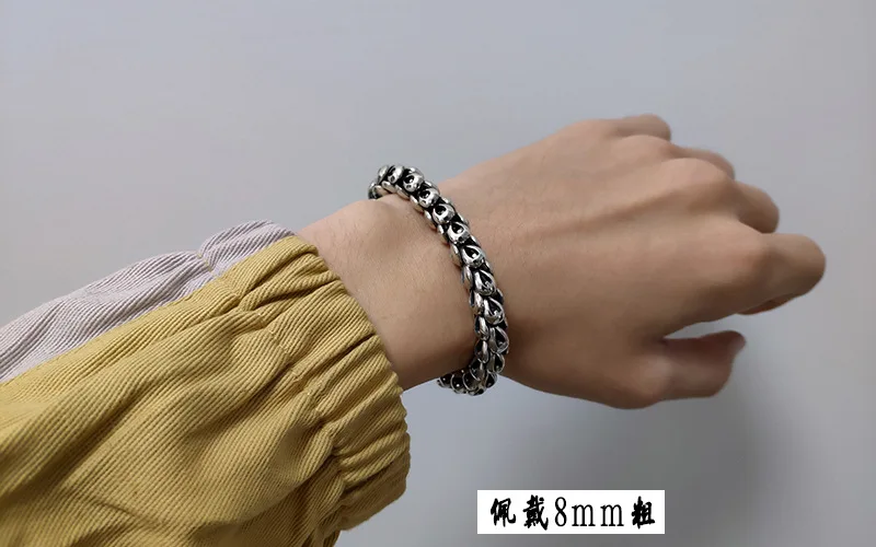 Браслет из чистого серебра s925 пробы в форме сороконожки, Мужской гладкий хипстерский браслет из тайского серебра в японском и южнокорейском стиле