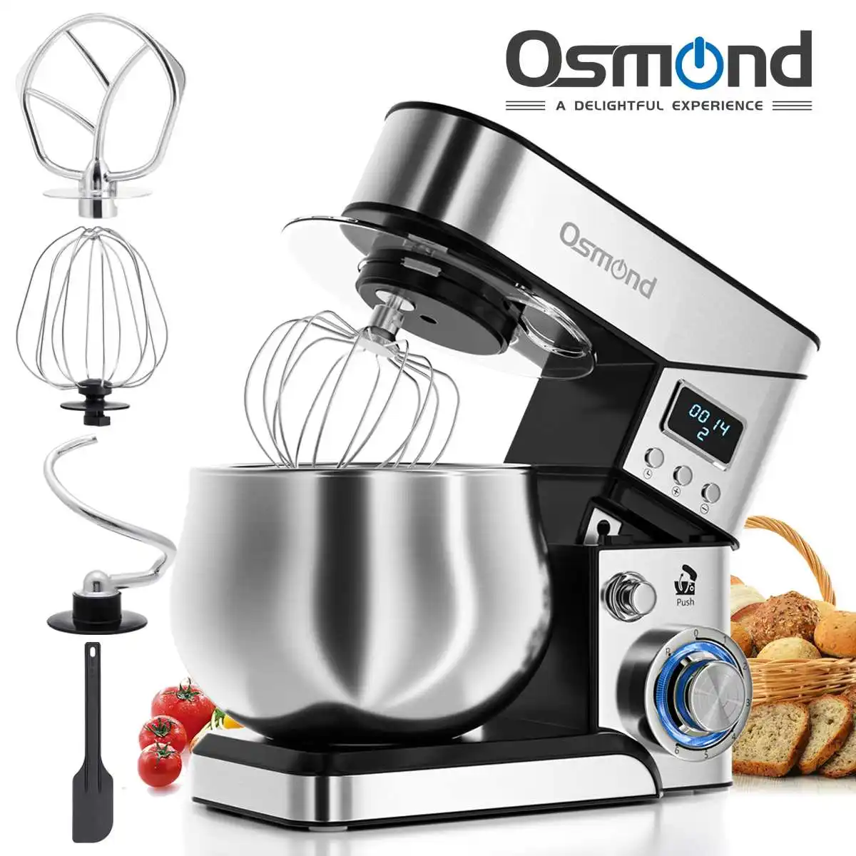 Особенности:● Интеллектуальный цифровой дисплей. Предустановка и регулировка скорости● 6 скоростей + пульс6 оптимизированных скоростей достаточно мощные для практически любой задачи или рецепта● 5л миска из нержавеющей стали для смешивания до 1,6 кг теста● Модернизированный 1300 Вт полностью Медный двигатель делает его более мощным и долговечным● Полностью металлические аксессуары разминают, смешивают, бьют, взбивают, все в одном● Нескользящие всасывания гарантируют его стабильность● Конструкция с наклонной головкой обеспечивает чистый доступ к чаше, чтобы легко добавить ингредиенты для рецепта● Стильная кухня, необходимая для вашего современного образа жизни● Прозрачный чехол для брызг, сохраняет еду и одежду аккуратнойХарактеристики:Модель: SC-205EБренд: OSMONDЦвет: серебристыйВилка: штепсельная вилка европейского стандарта 220 ВМощность Медного двигателя: 1300 ВтЕмкость чаши из нержавеющей стали 304: около 5л/169 унцийМатериал: нержавеющая сталь 304Размер хост-машины (Д * Ш * В): около 32 см * 18 см * 28 см/12,6 "* 7,1" * 11"304 Размер чаши из нержавеющей стали (Д * В): около 21 см * 15 см/8,3 "* 5,9"