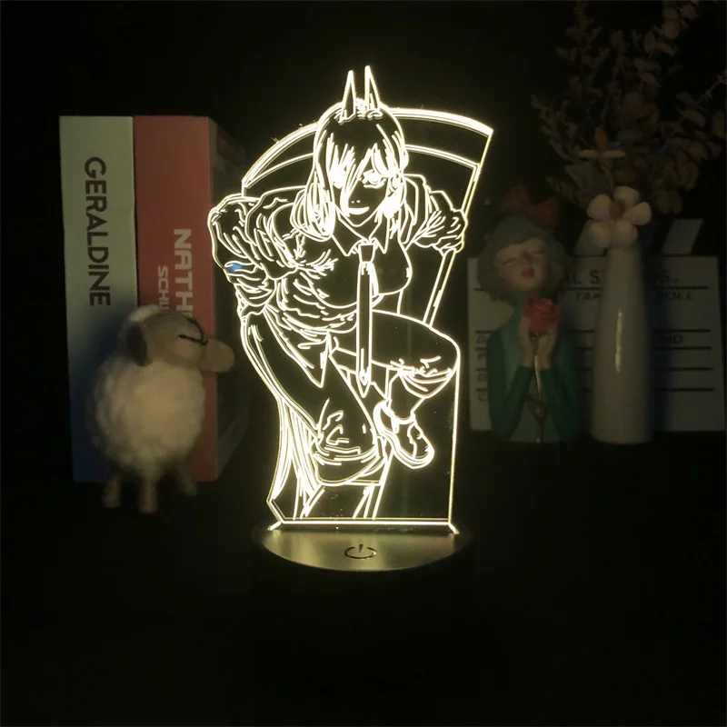 Бензопила человек мощность Аниме Манга сенсорный датчик 3D Ночник светильник для спальни Декор милый подарок на день рождения светодиодный светильник ребенок прекрасный подарок
