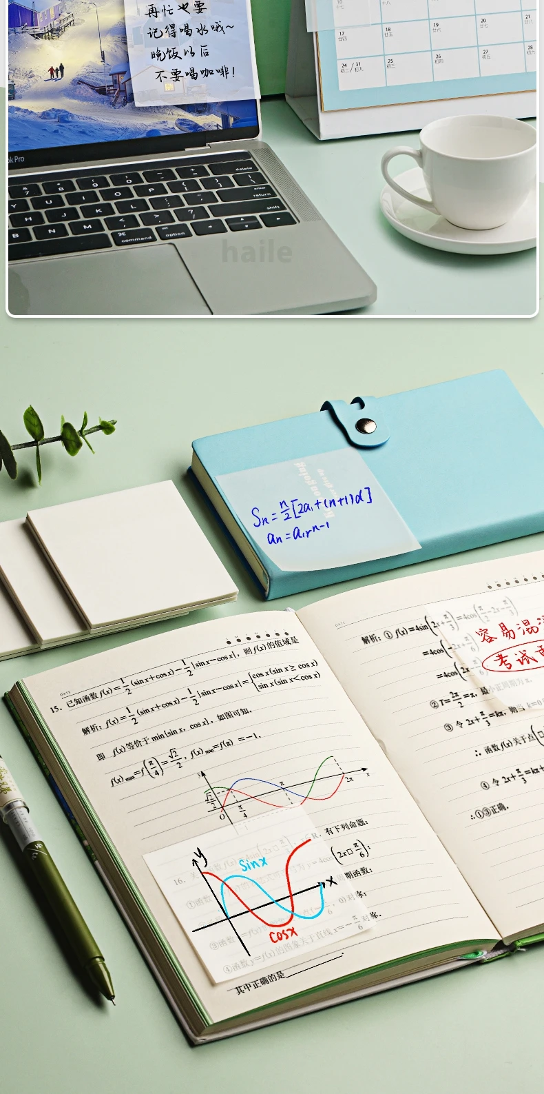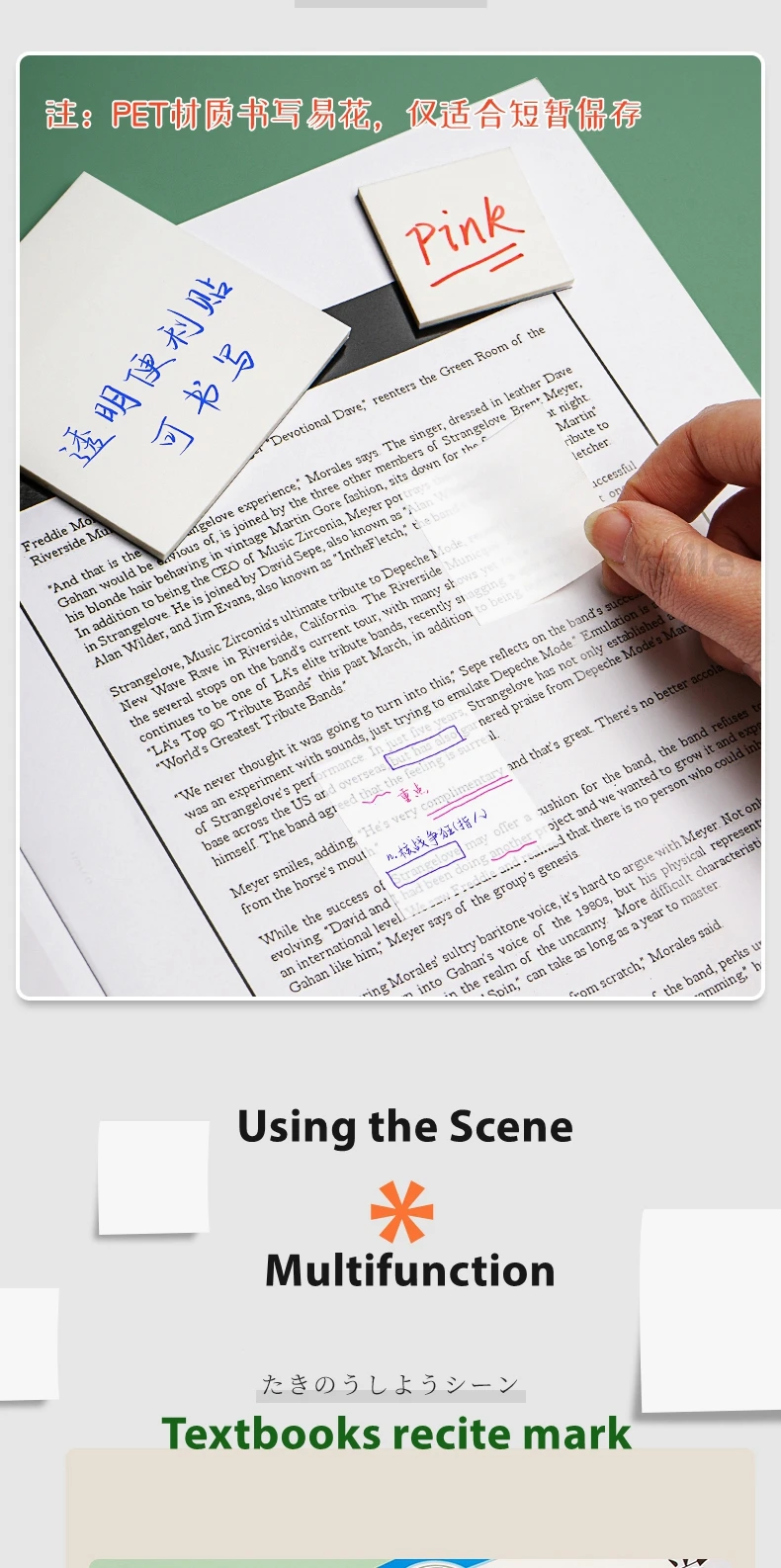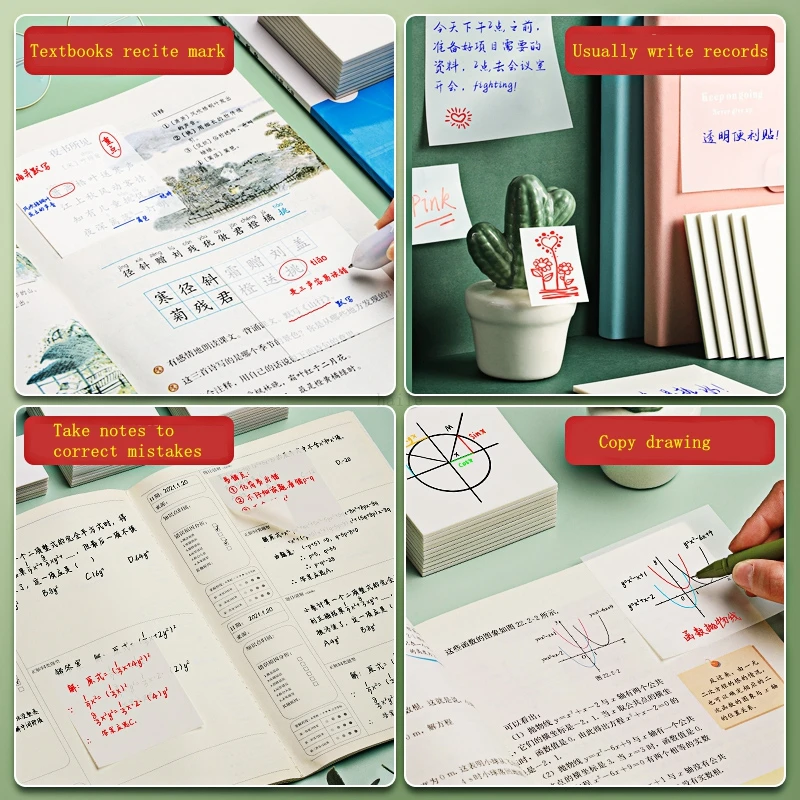 1. Высококачественный набор прозрачных липких нот, водонепроницаемый, сильная липкая способность, удаляет чисто. (50 листов на подкладку)