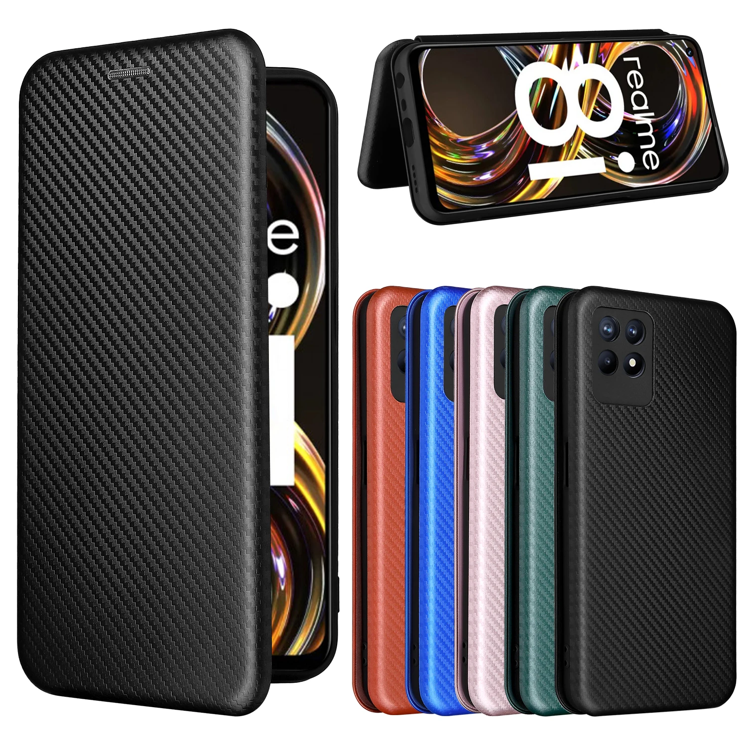 Для Realme 8i чехол из углеродного волокна Флип кожаный чехол для OPPO Realme 8 I RMX3151 бизнес Магнитный кошелек слот для карт тонкий Чехол