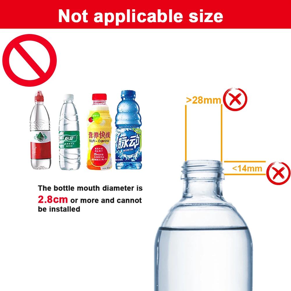 Примечание!Этот продукт не подходит для бутылок с минеральной водой, а только для бутылок с диаметром рта2,79 см (1,1 дюйм (ов).Подходит для брендовых бутылок:Пепси, кока-кола, черный чай со льдом, Липтон, дэет кола, бутылки Aqufina.Чтобы как правило капать воду, Просверлите отверстие в нижней части бутылки.После установки, если вода переливается из рта бутылки, пожалуйста, снимите пластиковое кольцо, которое поставляется с бутылкой и затяните рот бутылки. И тогда вы можете использовать его.Если у вас есть какие-либо вопросы о продукте, который вы получили, пожалуйста, свяжитесь со мной напрямую. Я сделаю все возможное, чтобы решить вашу проблему. Пожалуйста, не оставляйте плохие комментарии. Спасибо за понимание и поддержку.