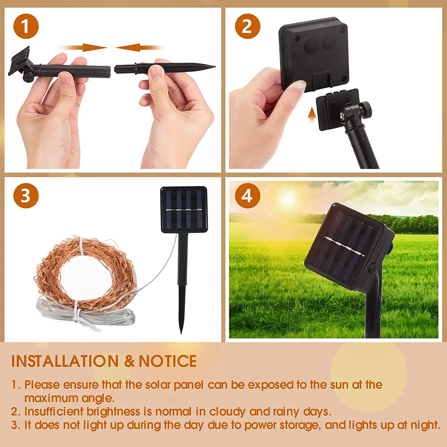 Гирлянда из медной проволоки на солнечной батарее, 100 светодиодов