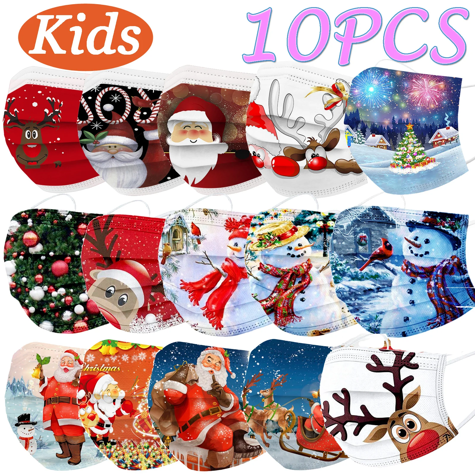 10 шт., одноразовые маски для лица с принтом снеговика, лося