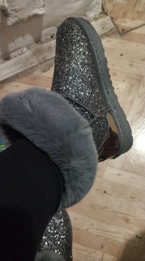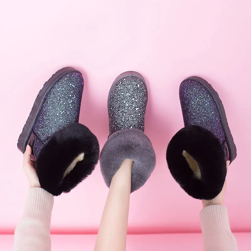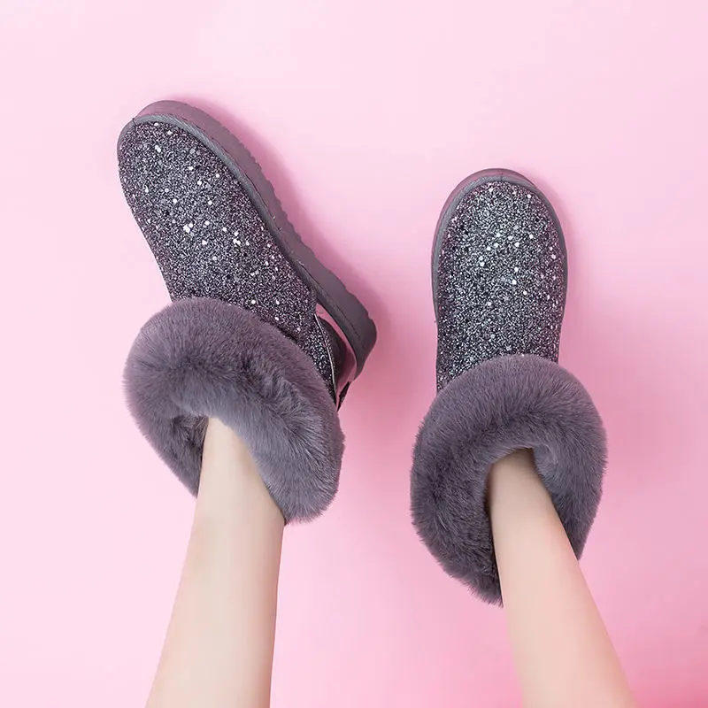 Зимние ботинки на толстой подошве женские короткие ботинки с шерстью Новинка зимняя Нескользящая Толстая теплая хлопковая обувь и бархатные ботинки с блестками