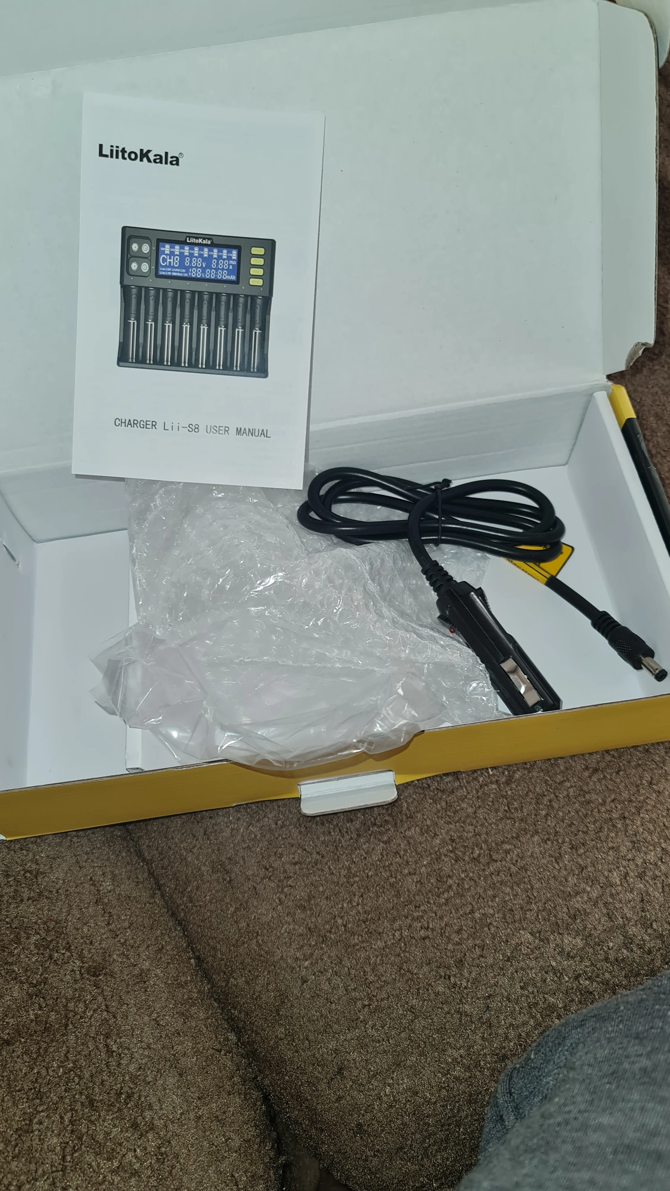 LII-500, комплектация для автомобилей. Зарядное устройство LiitoKala Lii-500 (аккумуляторы в комплект не входят) — 1 шт. Адаптер 12 В — 1 шт. Руководство — 1 шт.