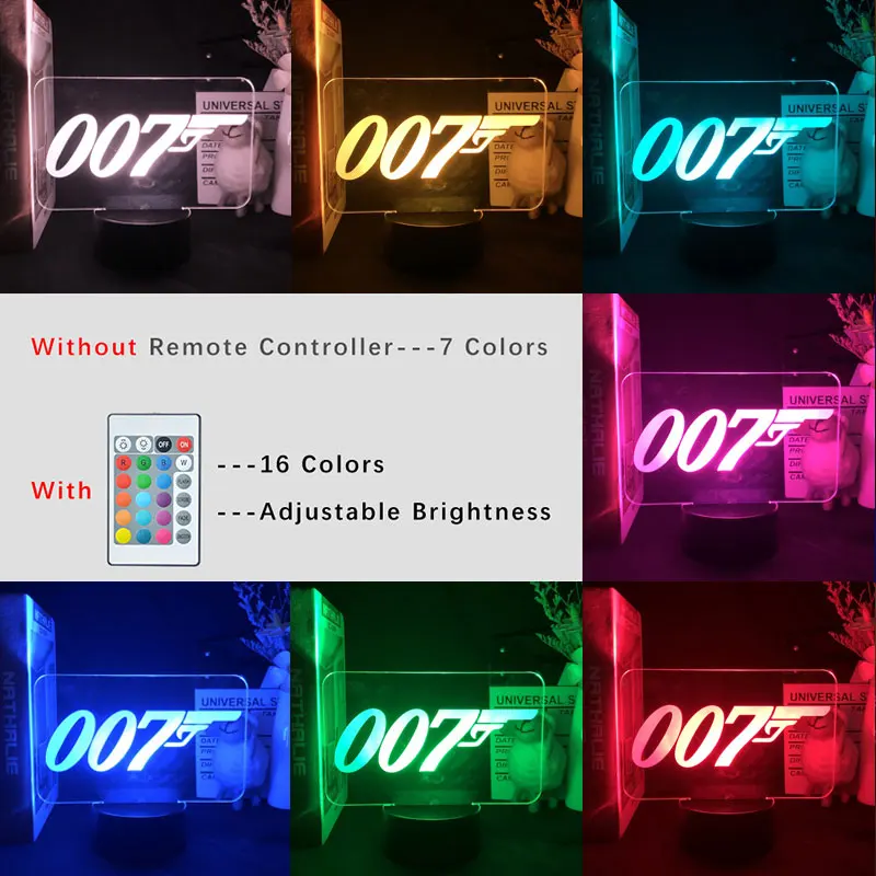 3D ночсветильник из фильма 007 Джеймс Бонд с сенсорным датчиком, украшение для спальни, милый подарок на день рождения, светодиодсветодиодный лампа для манги, Детский милый подарок