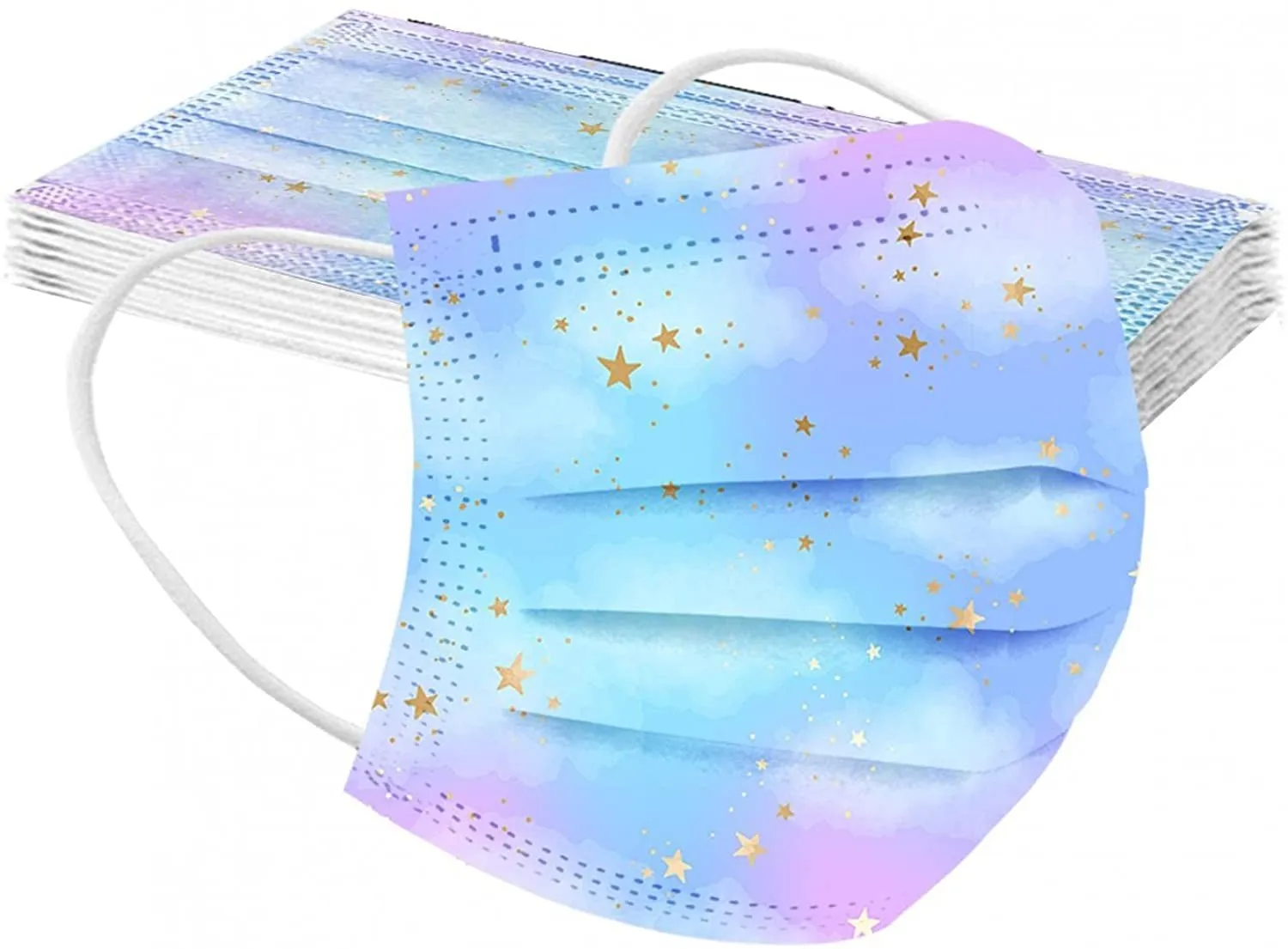 Детская трехслойная одноразовая маска для лица с принтом звезд