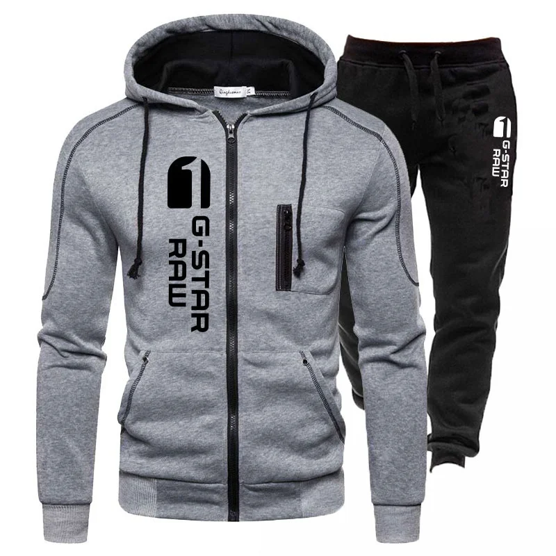 Мужской брендовый спортивный костюм, повседневный костюм для бега, уличный костюм, куртка на молнии + черные спортивные брюки, 2 шт.