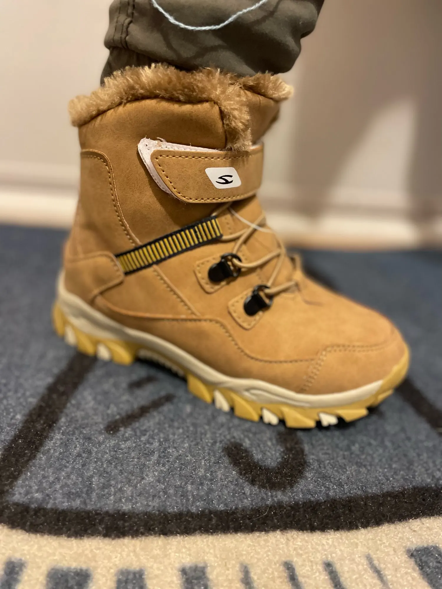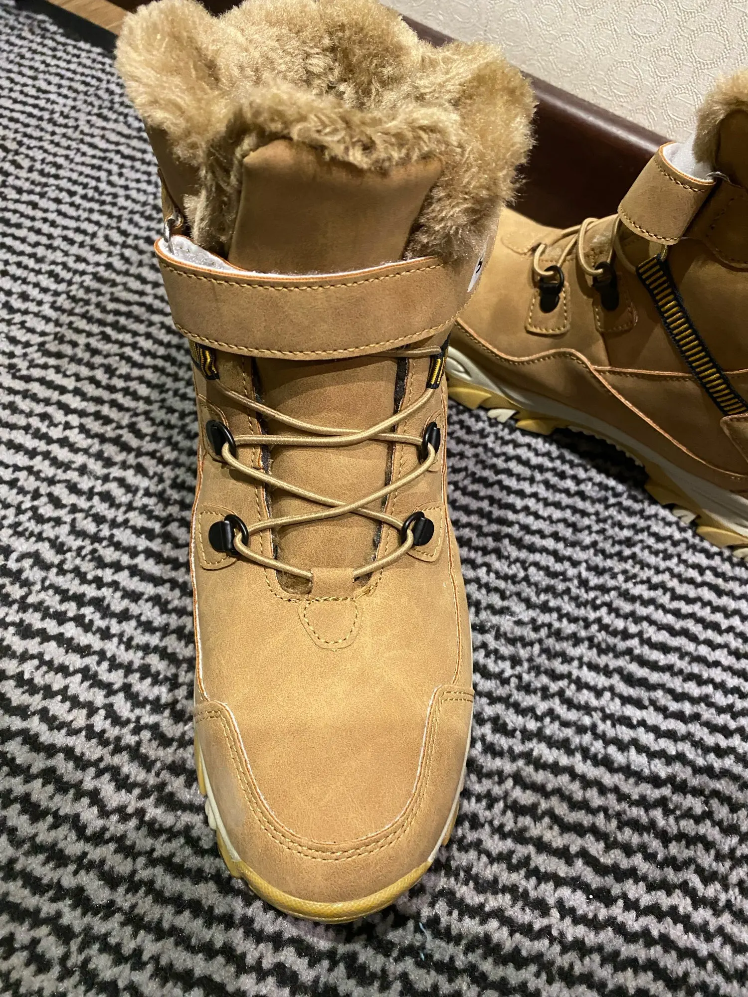 Зимние теплые меховые сапоги для мальчиков, уличные Нескользящие Детские сапоги для малышей, водонепроницаемая походная обувь до середины икры, сапоги для мальчиков