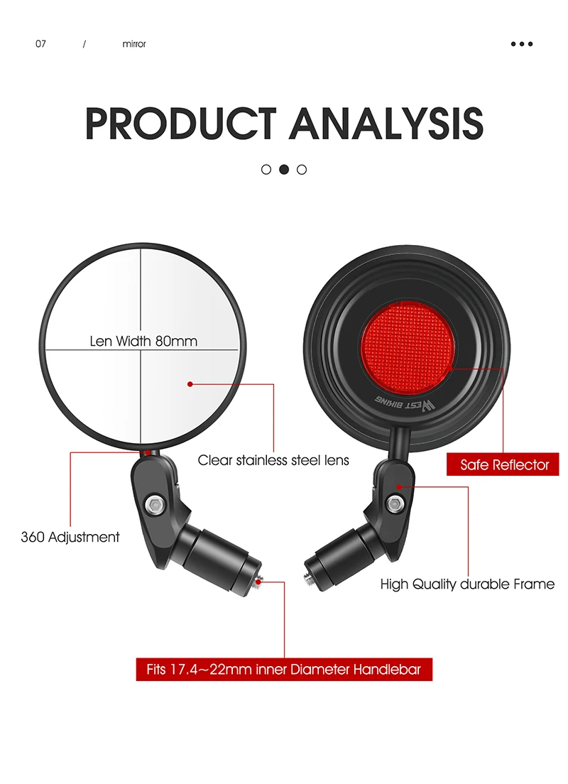 360 Вращение Регулируемый широкий диапазон велосипед зеркало заднег...