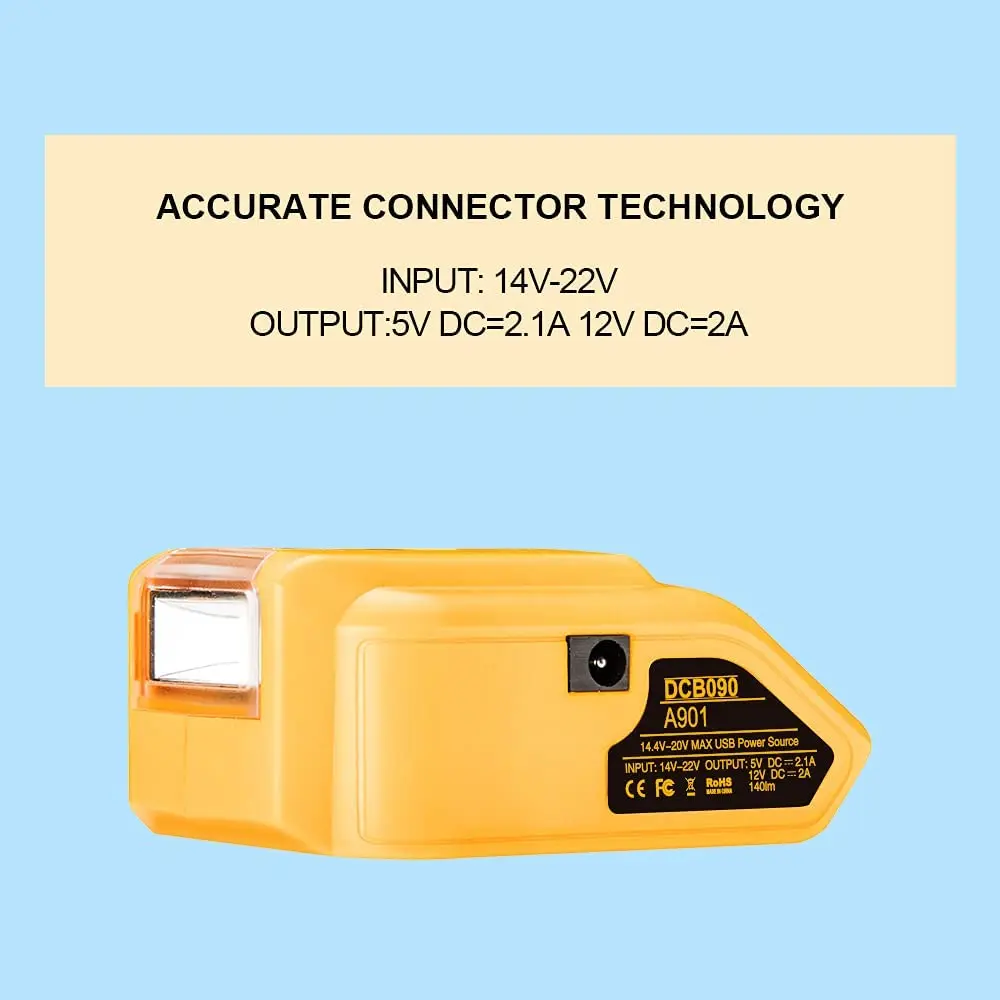Адаптер для аккумулятора DCB090 для Dewalt, зарядное устройство USB 20 в макс. 18 в с двойным USB-портом постоянного тока 12 В Светодиодный источник питания для светодиодного освещения