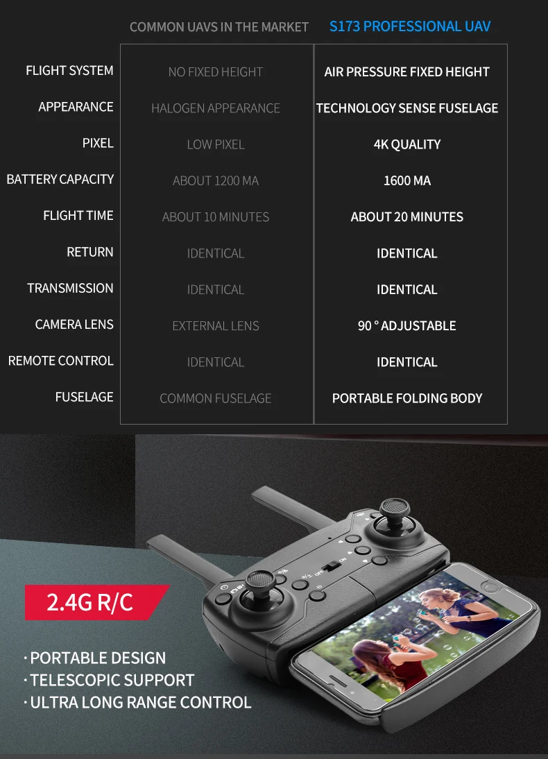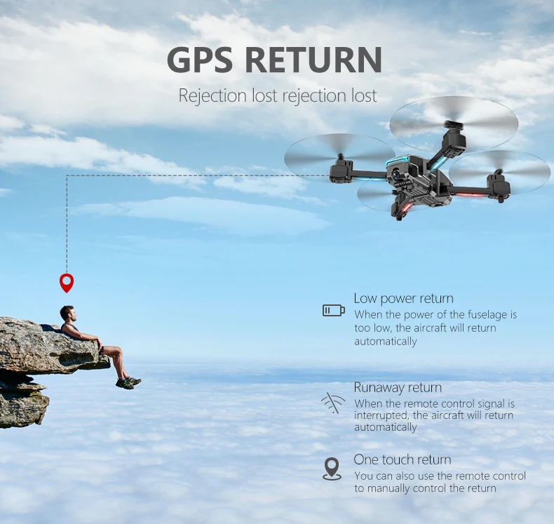 характерная черта: Аккумулятор -1300 мАч можно долго играть. Наслаждайся этим -Регулируемый на 90 градусов блок 4k HD широкоугольной камеры может быть удивительно настроен на Захватывайте потрясающие изображения и видео в небе. -GPS-Assisted Flight: предоставить точные данные о местоположении БПЛА. Встроенная функция возврата воздуха (RTH) делает полет безопаснее. Когда батарея разряжена или сигнал недостаточен, никто автоматически не вернется в воздух и не вылетит из зоны действия, не беспокоясь о потере дрона. -Используйте функцию режима удержания высоты, чтобы обеспечить стабильный полет. -С жестом фото и аудио записи, сделайте вашу фотографию более удобной и красивой. -После полета, вы можете нарисовать желаемую траекторию полета по телефону, и квадрокоптер будет летать по линии, которую вы рисуете. -Используя функцию Wi-Fi, вы можете подключаться к приложению в режиме реального времени через камеру мобильного телефона для съемки, записи и передачи изображений. -Неуправляемый режим, нет необходимости регулировать положение самолета перед полетом. -Легко найти дорогу домой одним щелчком мыши. -Использование технологии 5 ГГц для защиты от помех. -4 канала, которые можно поднимать, опускать, вперед, назад, влево, вправо и вращение на 360 °. Гироскоп -6 осей делает полет более стабильным и простым в управлении. -Фюзеляж четырехосного самолета выполнен из высокопрочного износостойкого инженерного пластика, который легок и долговечен. характерная черта: Высота / вперед / назад / повернуть налево / влево / вправо / пневматический фиксированный высокий зависание / поворот на 360 градусов / регулировка скорости / возврат в одну кнопку без режима без головы / управление APP / передача в реальном времени / запись фотографий / GPS-позиционирование / Auto Follow / Автоматический возврат / Неконтролируемый возврат малой мощности Заказ содержит Самолет * 1 Контроллер * 1 Аккумулятор для тела * 1 USB зарядное устройство * 1 Отвертка * 1 Инструкция по эксплуатации * 1 Запасной нож * 2 Забор * 4