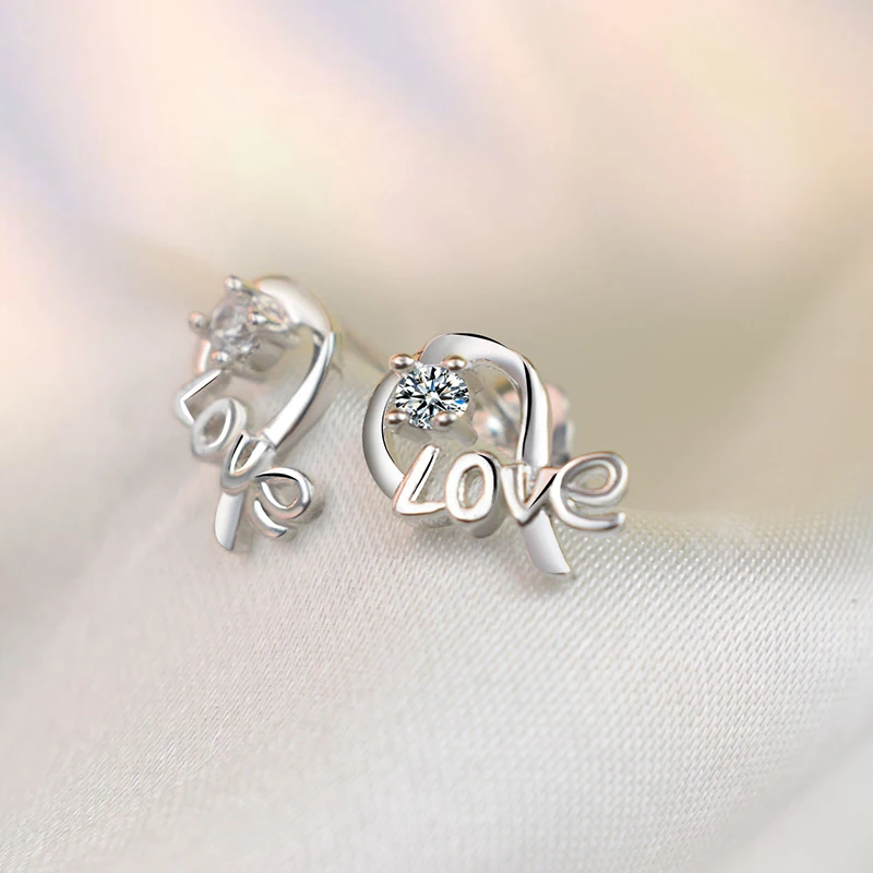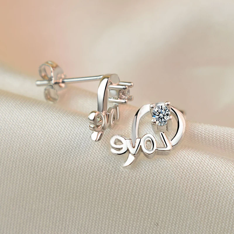 Женские серьги-гвоздики серебряного цвета, с фианитом