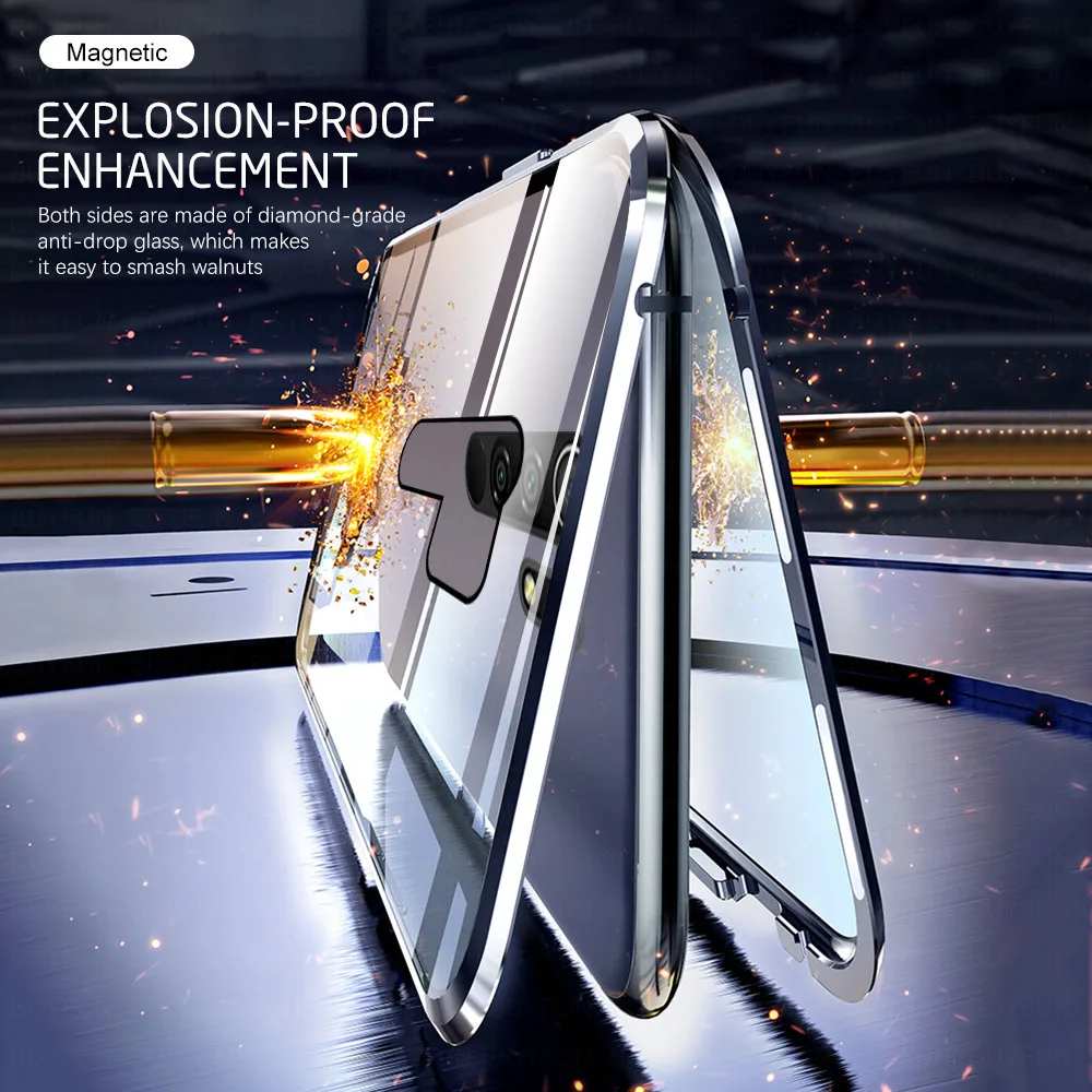 Защитный двухсторонний стеклянный Магнитный чехол с полной защитой на 360 для Xiaomi Redmi 9T 9C 9A 9, прозрачный стеклянный металлический бампер, чехол для телефона