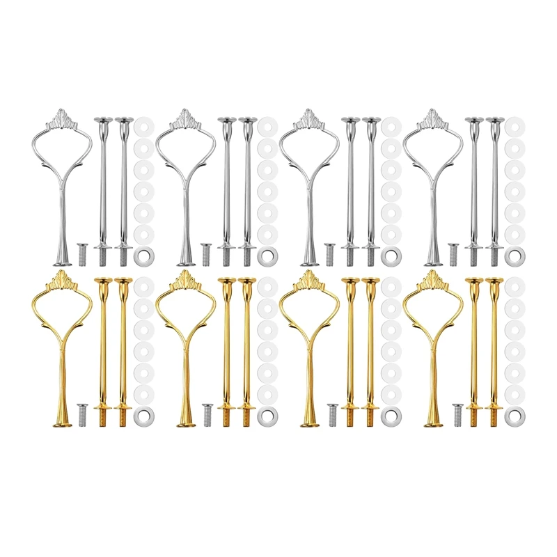 8 комплектов 3-уровневая подставка для торта в форме короны, фурнитура, держатель, кухонные гаджеты для свадьбы и вечеринки-серебристый и золотой