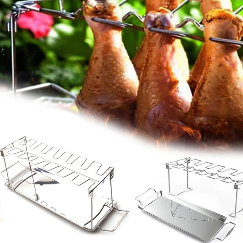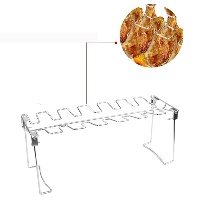 Подставка для крыльев куриных ножек, металлическая подставка из нержавеющей стали для жаровня с капельным лотком для коптильного гриля или духовки, отлично подходит для барбекю, пикника