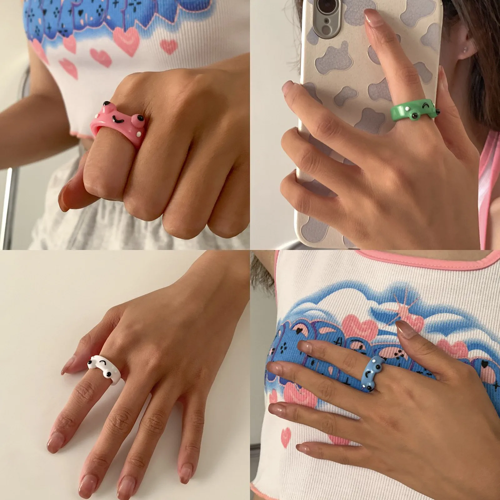 1. Уникальный Дизайн-простой и благородный стиль оригинального дизайна для большего количества Комфортные ощущения при ношении, все детали дизайна отличные, одинаково Великолепно подходит для повседневных или нарядных мероприятий.2. Глиняные кольца изготовлены из полимерной глины и покрыты прозрачной УФ-смолой 3. Милые и Прочные Кольца, которые можно носить, когда захотите. Он может соприкасаться с водой и не окрашивается или что-то еще.4.Это кольцо очень светильник, и дизайн более минималистичный, поэтому оно не будет слишком громоздким на пальцах, вы можете даже забыть о его существовании.